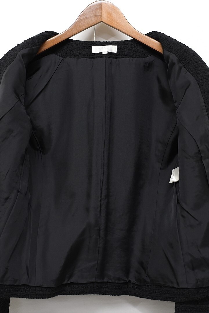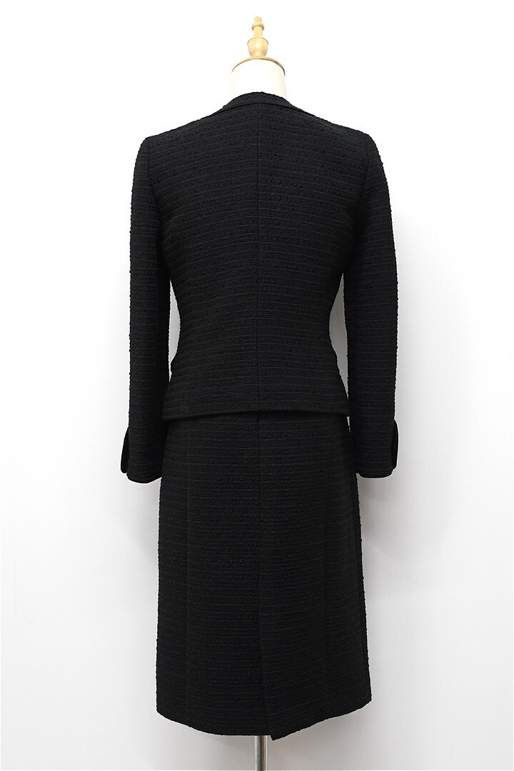 E517/TO BE CHIC セットアップ スーツ アンサンブル ツイード ノースリーブワンピース ノーカラージャケット フェイクパール 40 M 黒