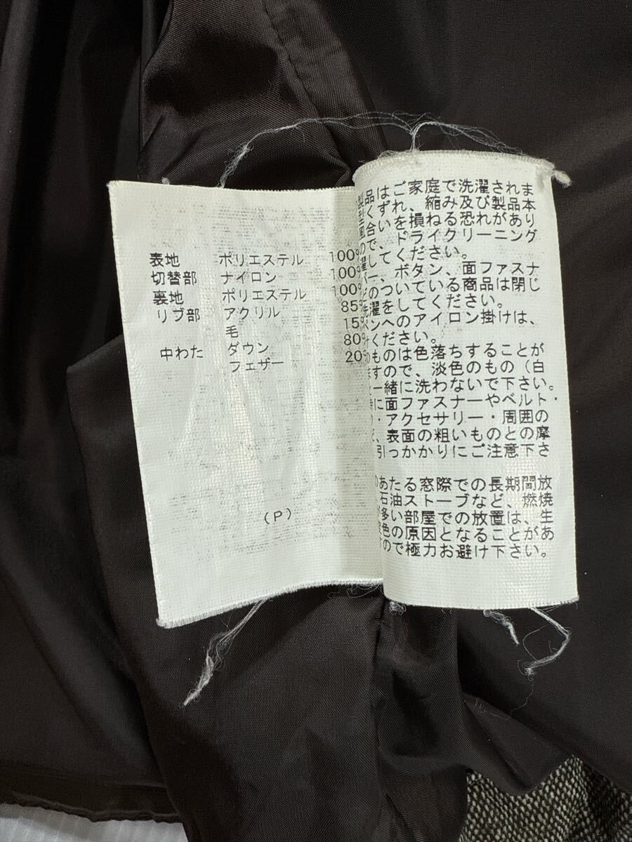素材 【 表地-ポリエステル100%/切替部-ナイロン100%/裏地-ポリエステル100%/リブ部-アクリル85%毛15%/中わた-ダウン80%フェザー20% 】