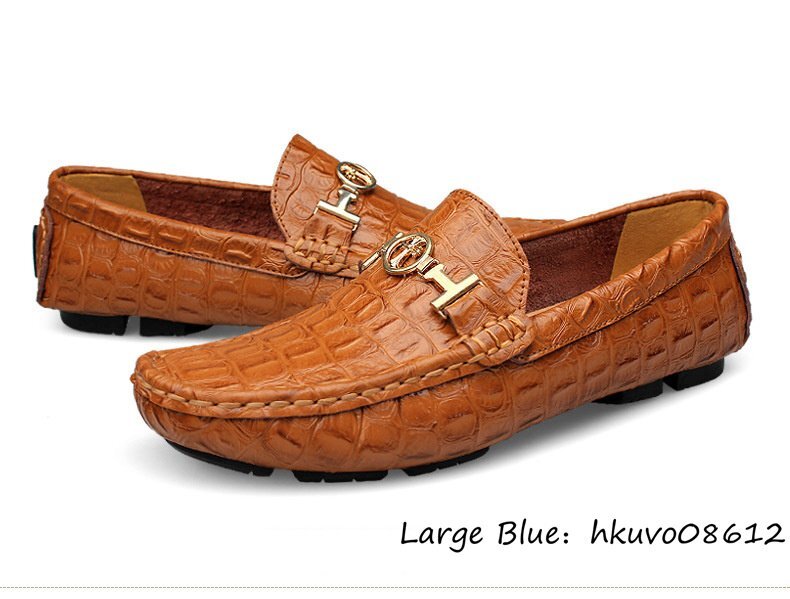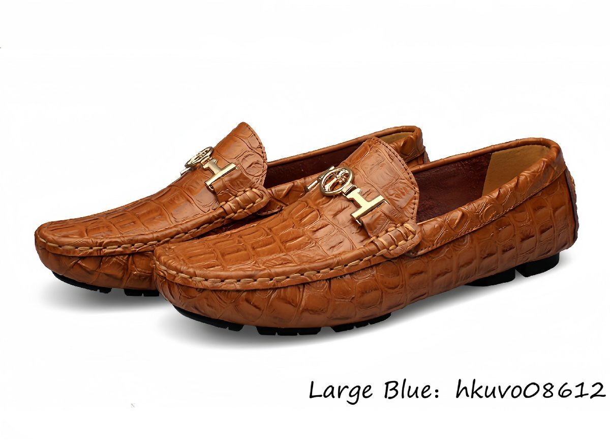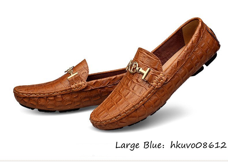 高級品*牛革 メンズ 鰐柄 ドライビングシューズ レザーシューズ 革靴 職人手作り ローファー スリッポン ビジネスシューズ ブラウン 26.5cm