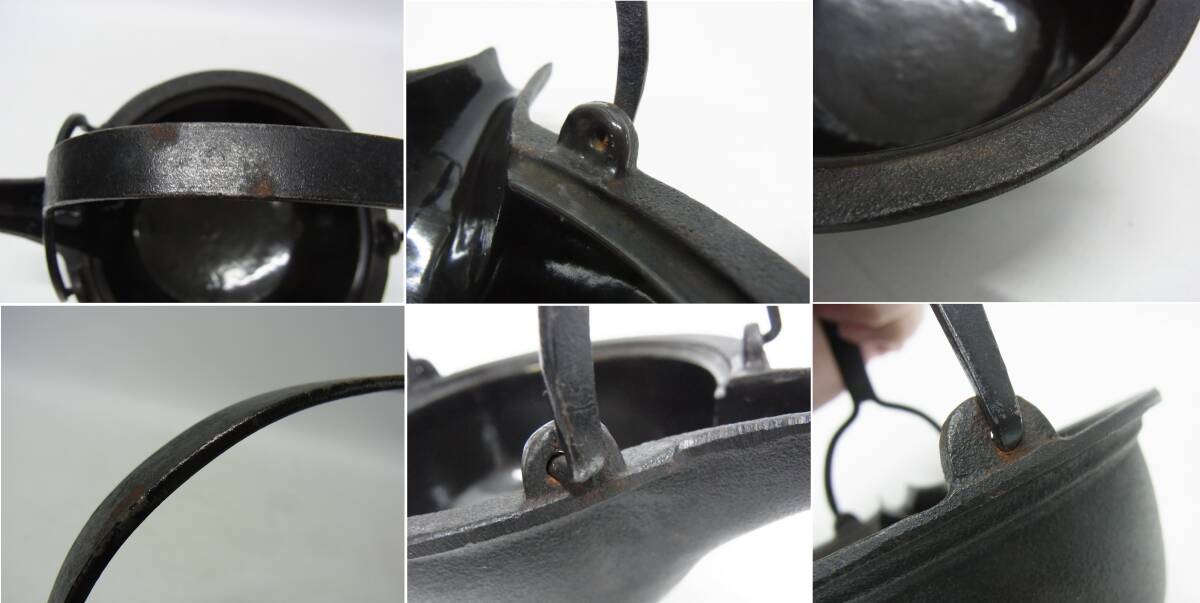 | 譲り受けた物で、本来の状態、容量含め詳細は不明です。 画像にてお詳しい方、お分かりになる方のご判断でお願い致します。 スレキズやくすみ、汚れやサビなど使用感・経年感ございます。 現状でのお渡しとなりますので、お手入れなど前提のうえ、 十分なご検討をお願い致します。 状態に関しましては画像でご確認いただき、ご判断をお願い致します。 気になる点はご入札前にご質問ください。 ※専門的な知識がありませんので、ご質問内容によっては お答え出来ない場合があるかもしれません。予めご了承ください。 上記内容含め、経年保管品になりますので、 ご理解いただける方のご入札いただけましたら幸いです。 撮影した照明により、色合いが多少違って見えるかもしれませんが、ご了承ください。 【サイズ】 口縁直径約13.3センチ 高さ約16センチ(取手含む) ※素人採寸です。多少の誤差はご了承くださいませ。 ※画像でもご確認ください。 ※画像では高さ約22cmのティッシュ箱と比較もしております。 【発送方法】 ・ゆうパック/60サイズ ---------------------------------------------------------------------- ※ゆうパックの送料はお届け地域によって送料が異なりますので、 気にされる方は必ずご入札前に「質問欄」よりお問い合わせください。 | |||