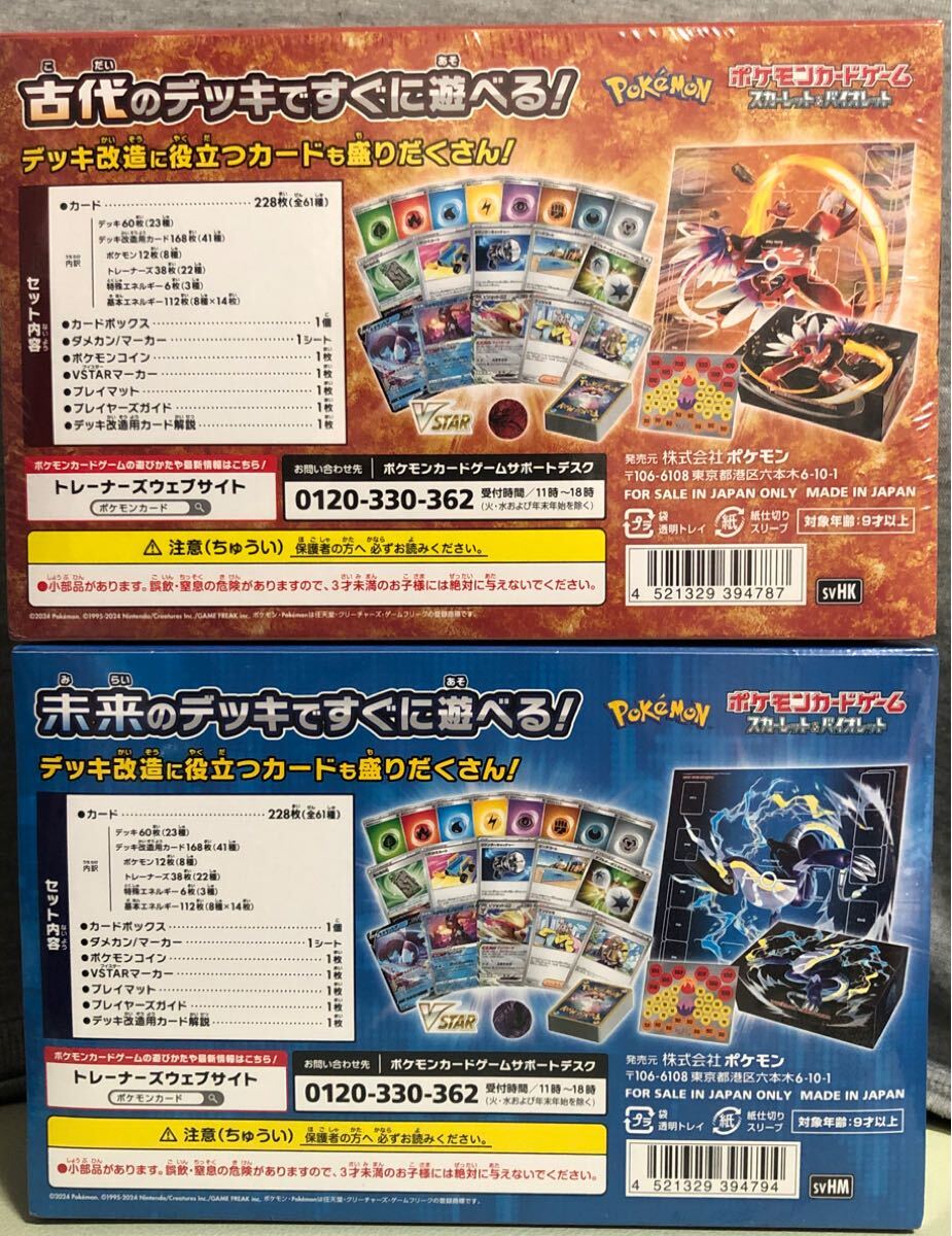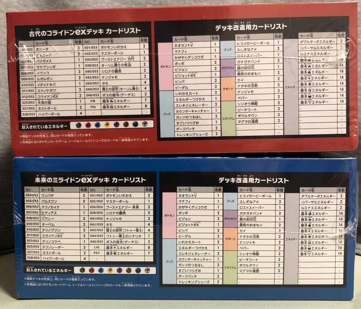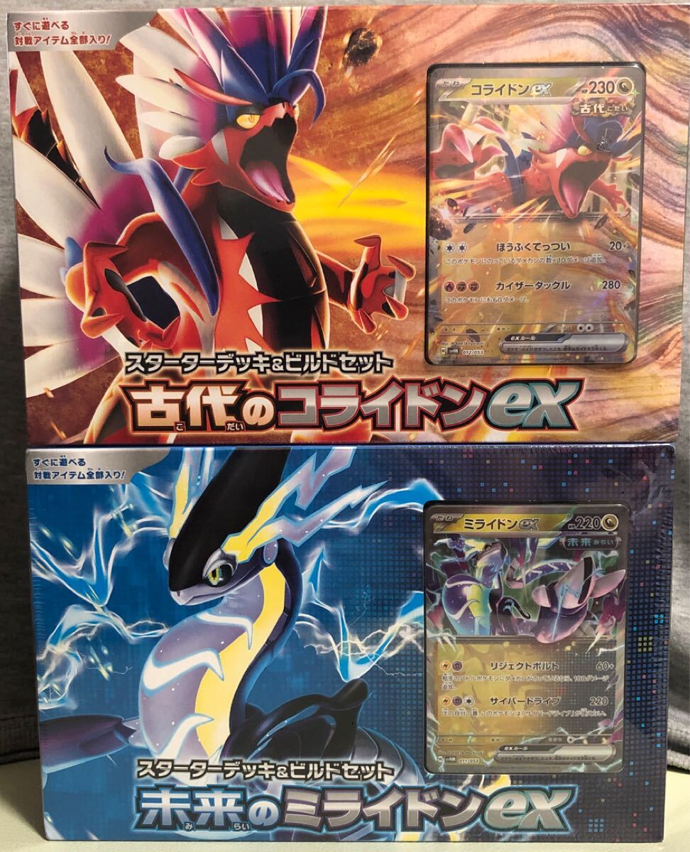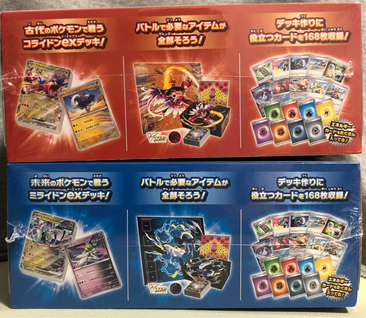 ポケモンポケモンカードゲーム、ポケカのスターターデッキ&ビルドセットより、未来のミライドンEXと古代のコライドンEXのシュリンク付未開封新品セットです。子供用に購入しましたが、興味がなく未開封のままのセットになります。