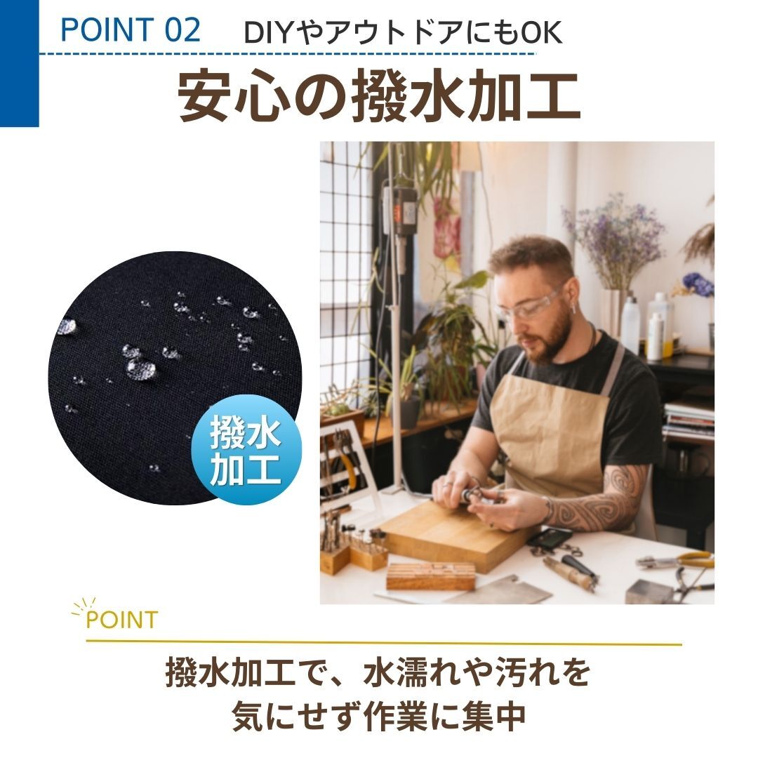 ●商品説明・この商品は撥水加工で袖がなく、 動きやすく汚れも目立たないカフェ風の作業エプロンです。