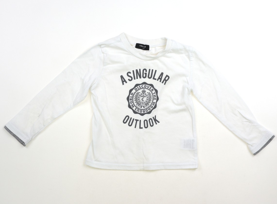 ダブルスリーブ。袖口からひじにかけて毛玉が目立ちます。襟ぐり・袖に黄ばみ汚れあり。遊び用にいかがでしょうか。