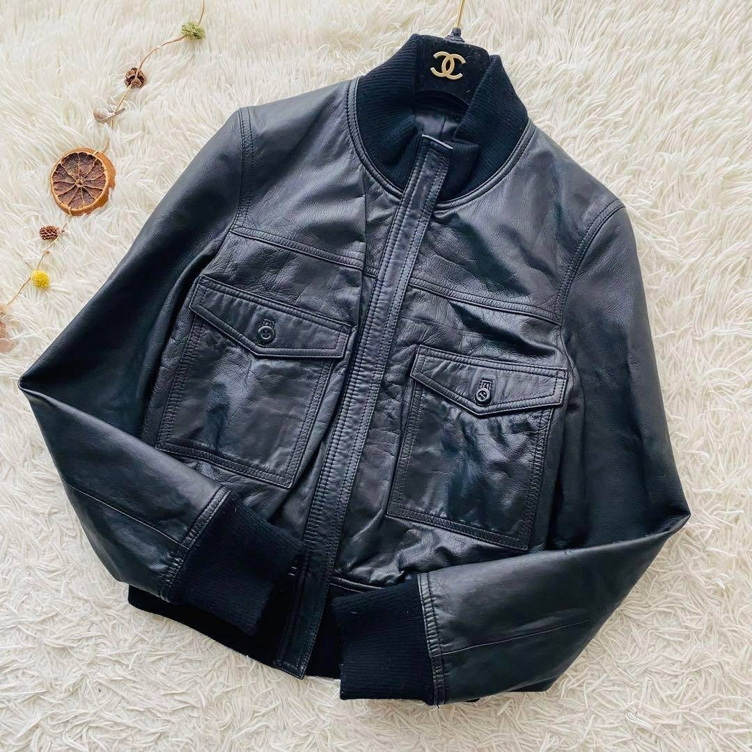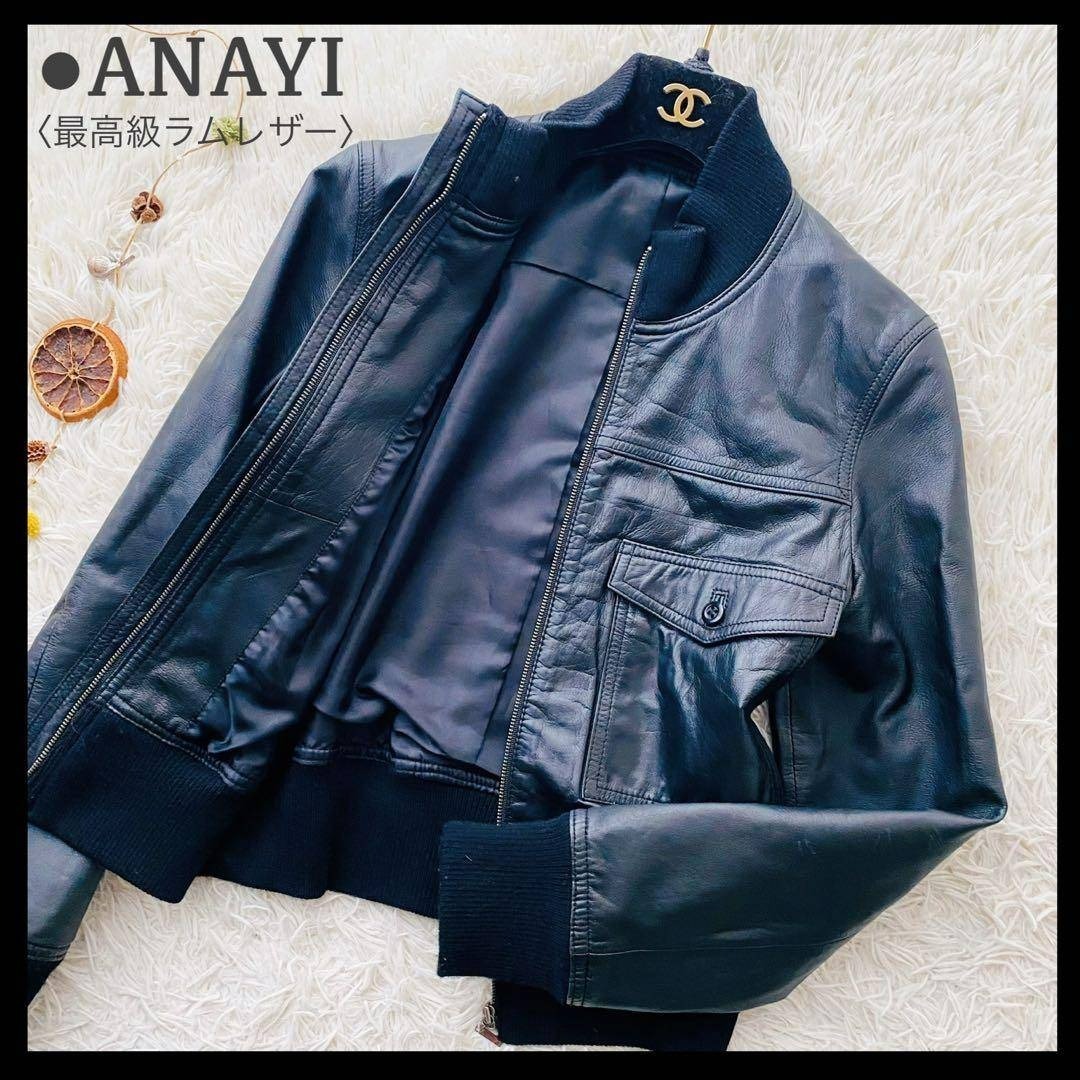 ANAYI アナイ 定番デザイン 最高級ラムレザー リブニット ジップアップ シングル レザージャケット アウター