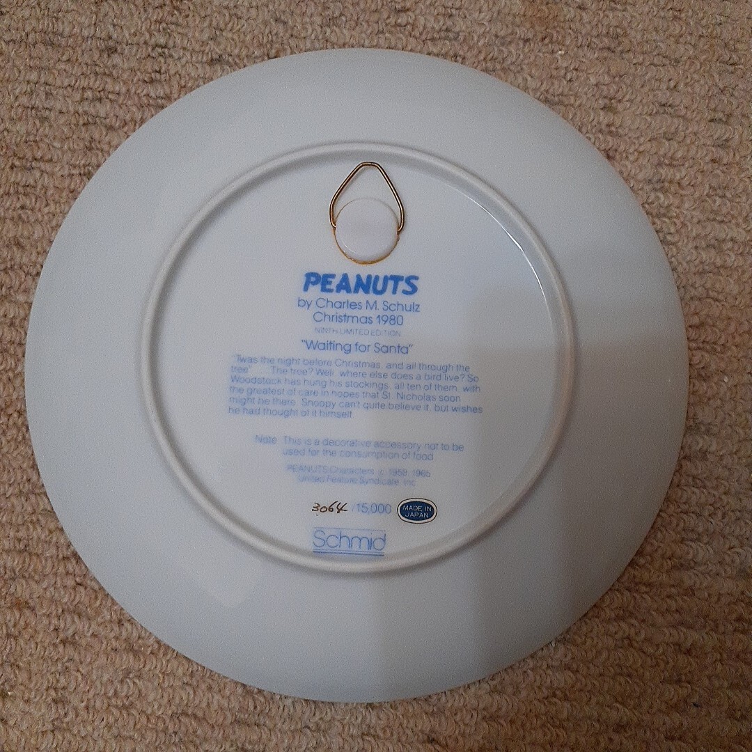 ピーナッツ(スヌーピー)の1980年クリスマスプレートになります。