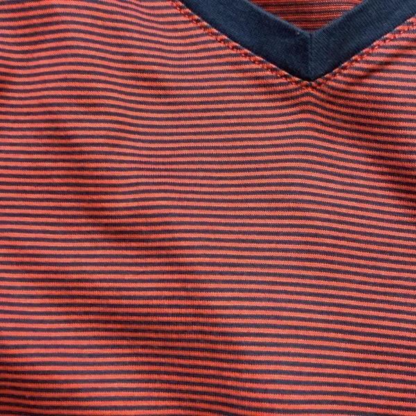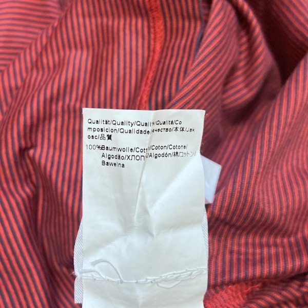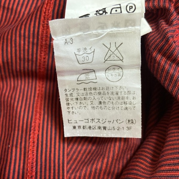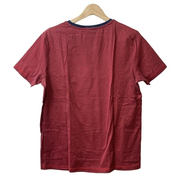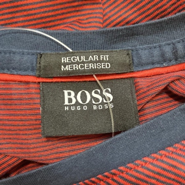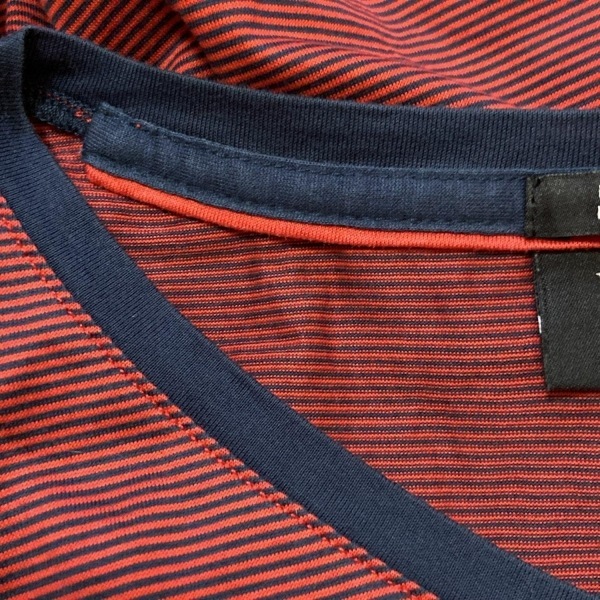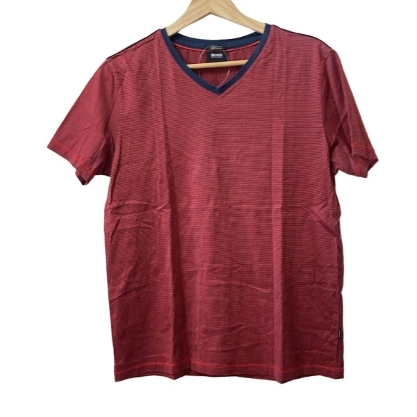 ヒューゴボス HUGOBOSS 半袖Tシャツ サイズS - レッド×ダークネイビー メンズ Vネック/ボーダー トップス