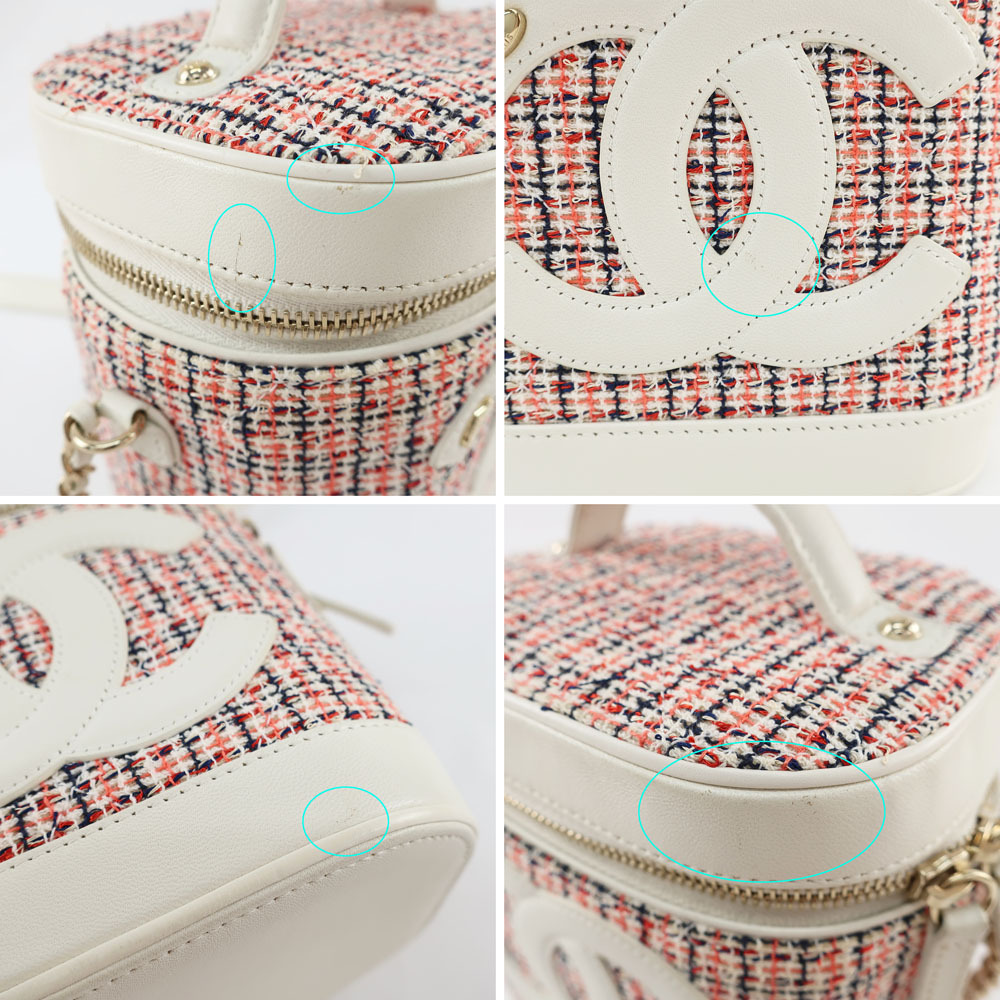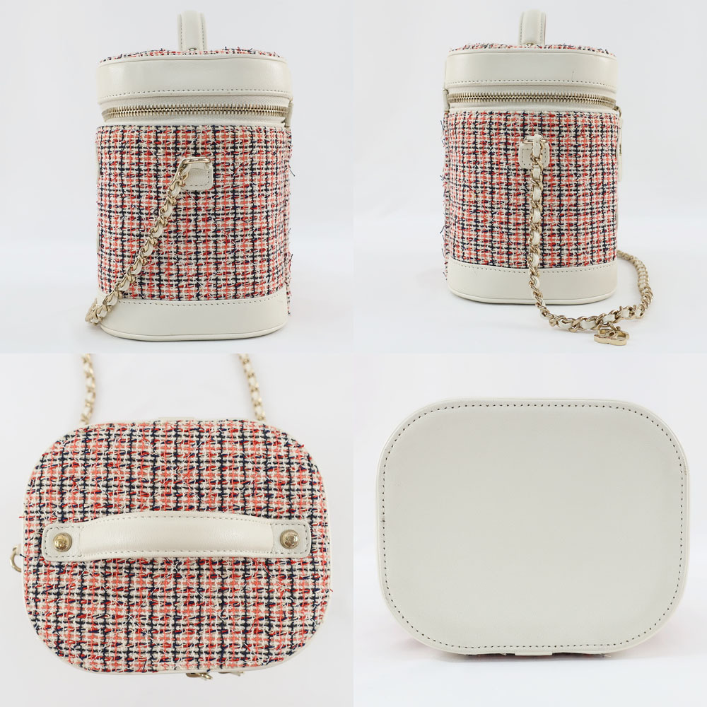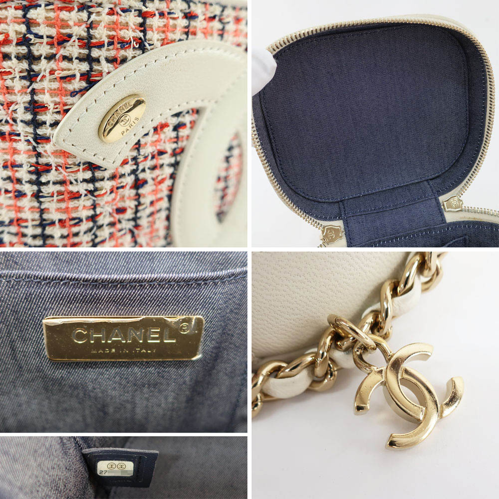 【天白】シャネル バニティケース チェーンショルダー ココマーク ツイード ホワイト ゴールド金具 27番台 AS0323 鞄
