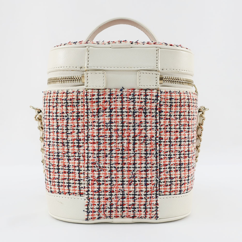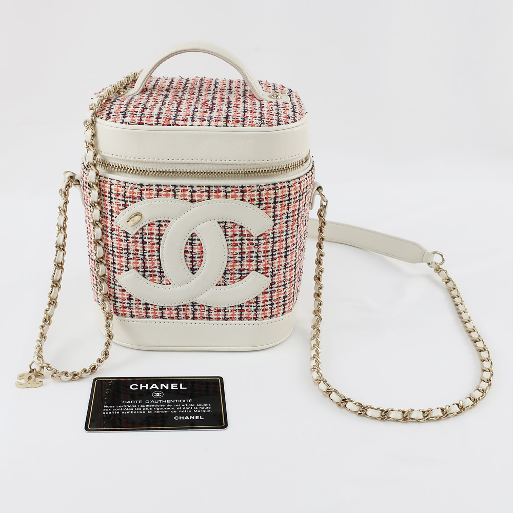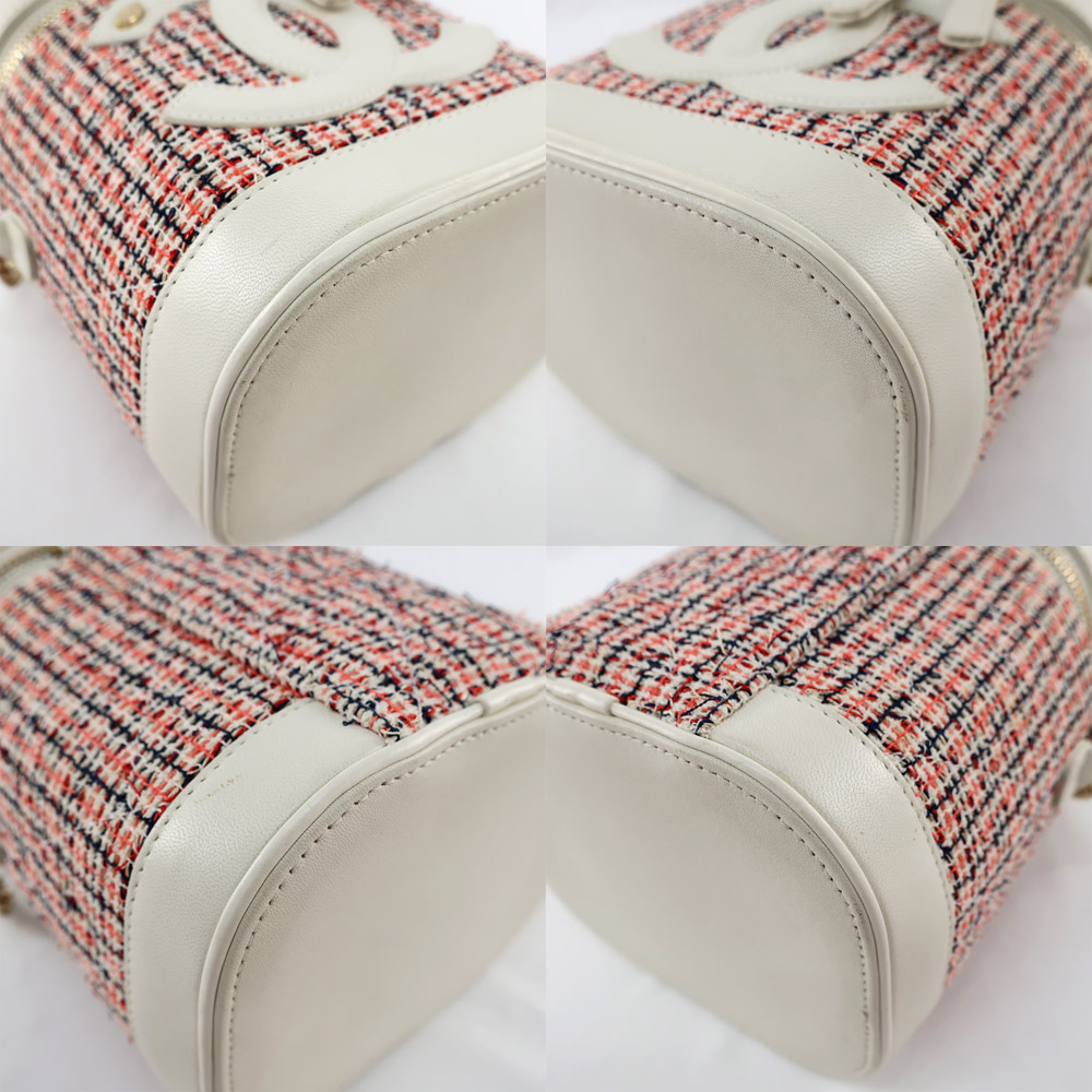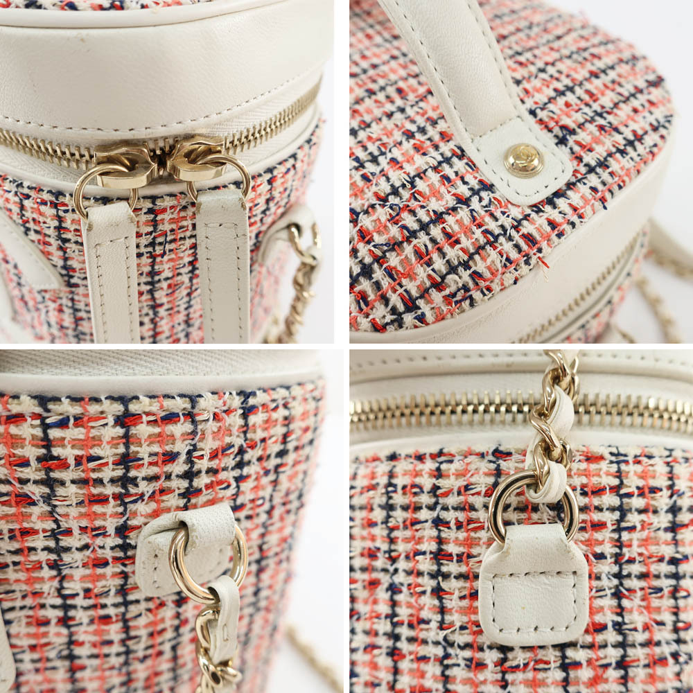 【天白】シャネル バニティケース チェーンショルダー ココマーク ツイード ホワイト ゴールド金具 27番台 AS0323 鞄