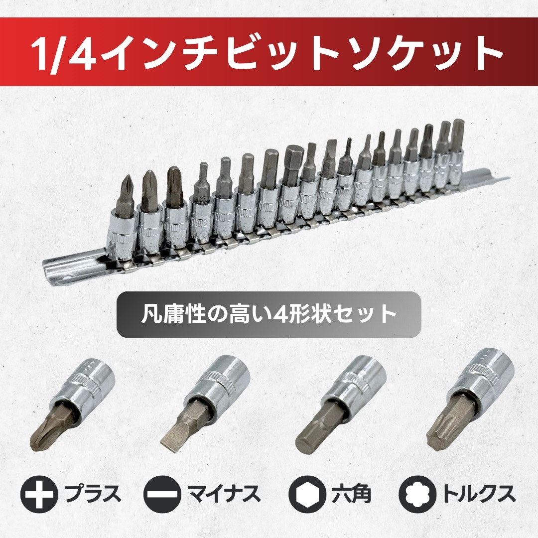 A マキタ 互換 ビットソケット セット 1/4 差込角 6.35mm 18種 ラチェット トルクレンチ 六角 プラス マイナス トルクス