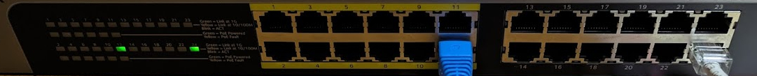 1~24の端子にルーターやパソコンをつなぎ、それぞれで通信できることを確認しました。