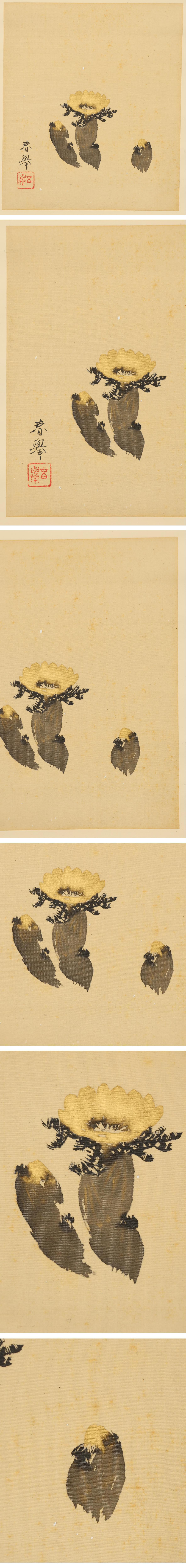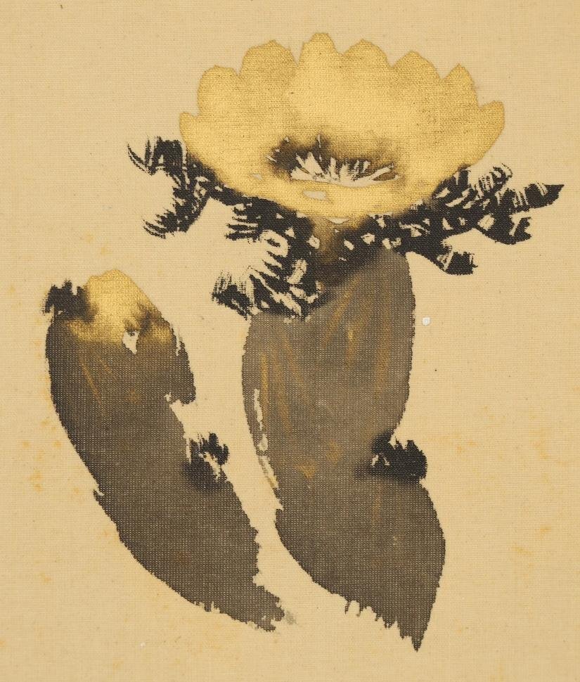 この作品は、肉筆・絹本により『福寿草』が描かれております。