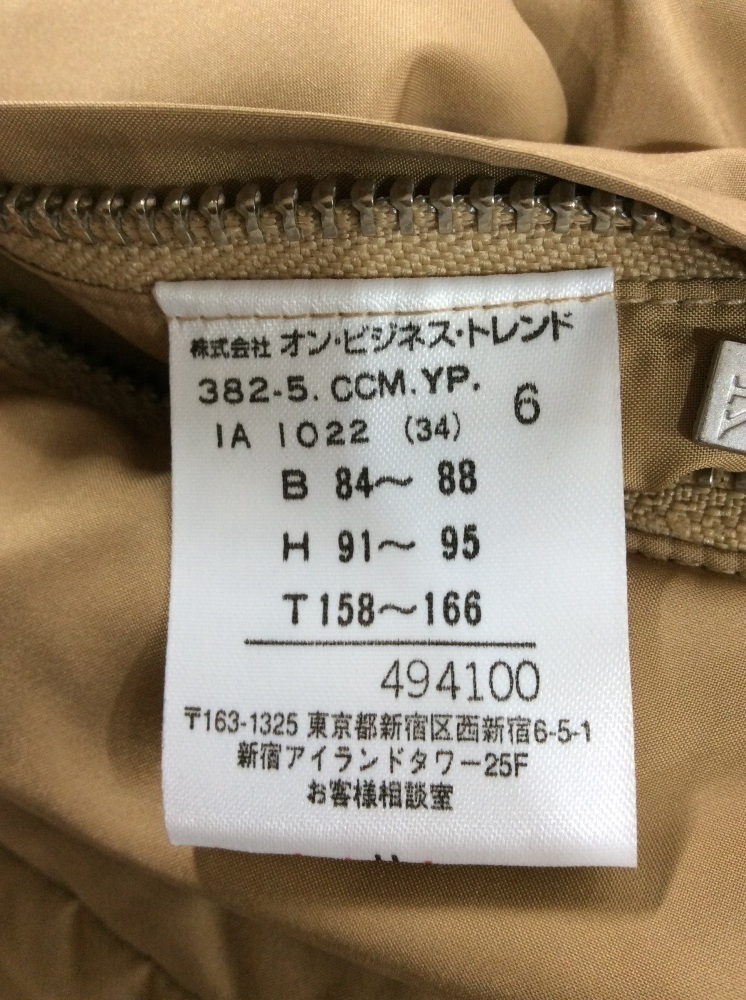 管理番号:124400 カルバン・クライン キャメル3wayコート 表示サイズ:6 実寸(参考)