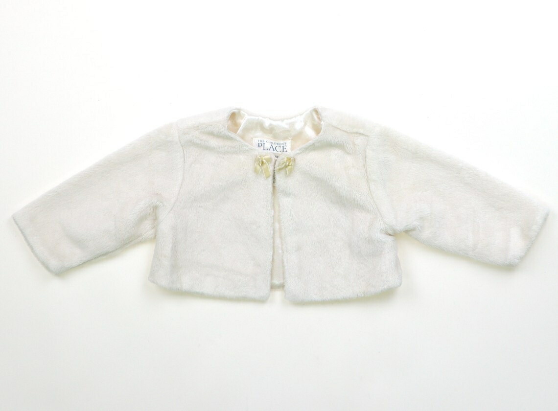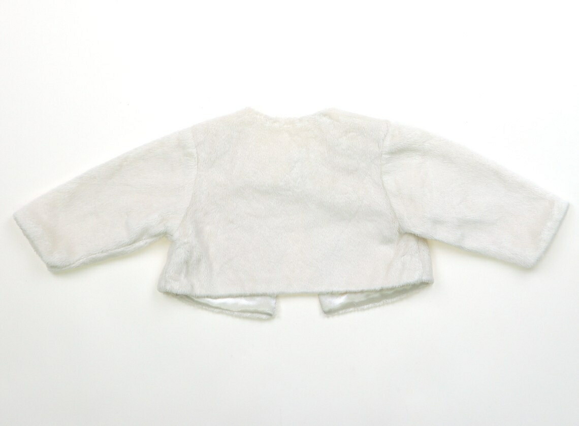 実際のサイズ表記は3-6monthsです。薄手のショートファー素材で裏地付き。リボンに毛羽の付着がありますが、まだまだお使いいただけそうです。