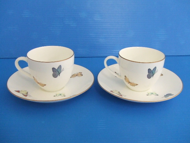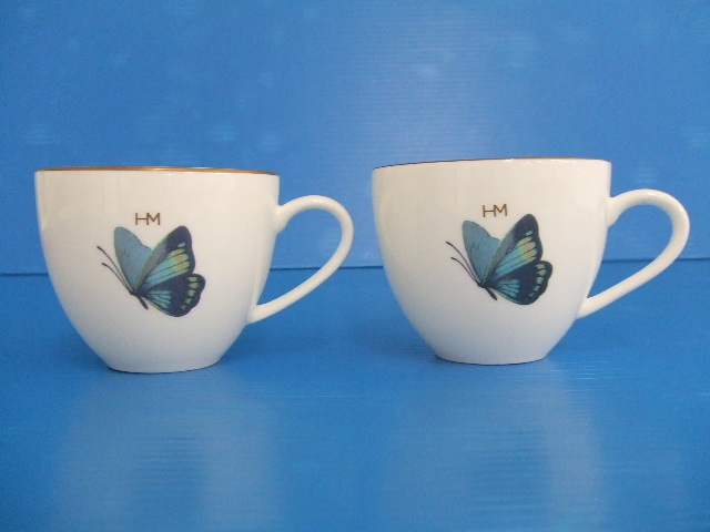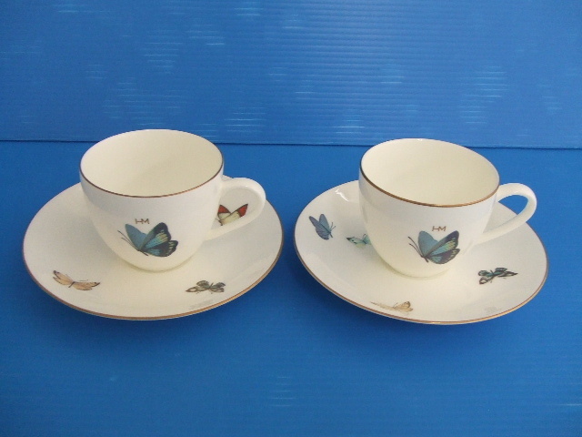 HANAE MORI DINNERWARE カップ&ソーサー2組セット 白/蝶柄