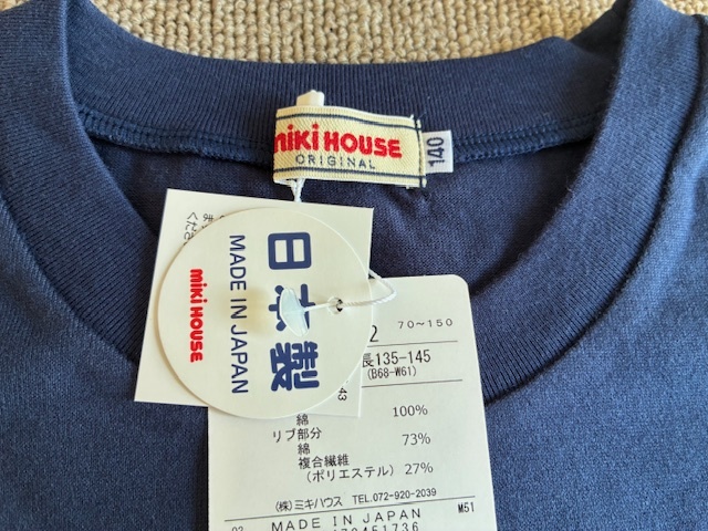 ★送料\185新品MIKI HOUSEミキハウスロゴ半袖Tシャツ140★紺