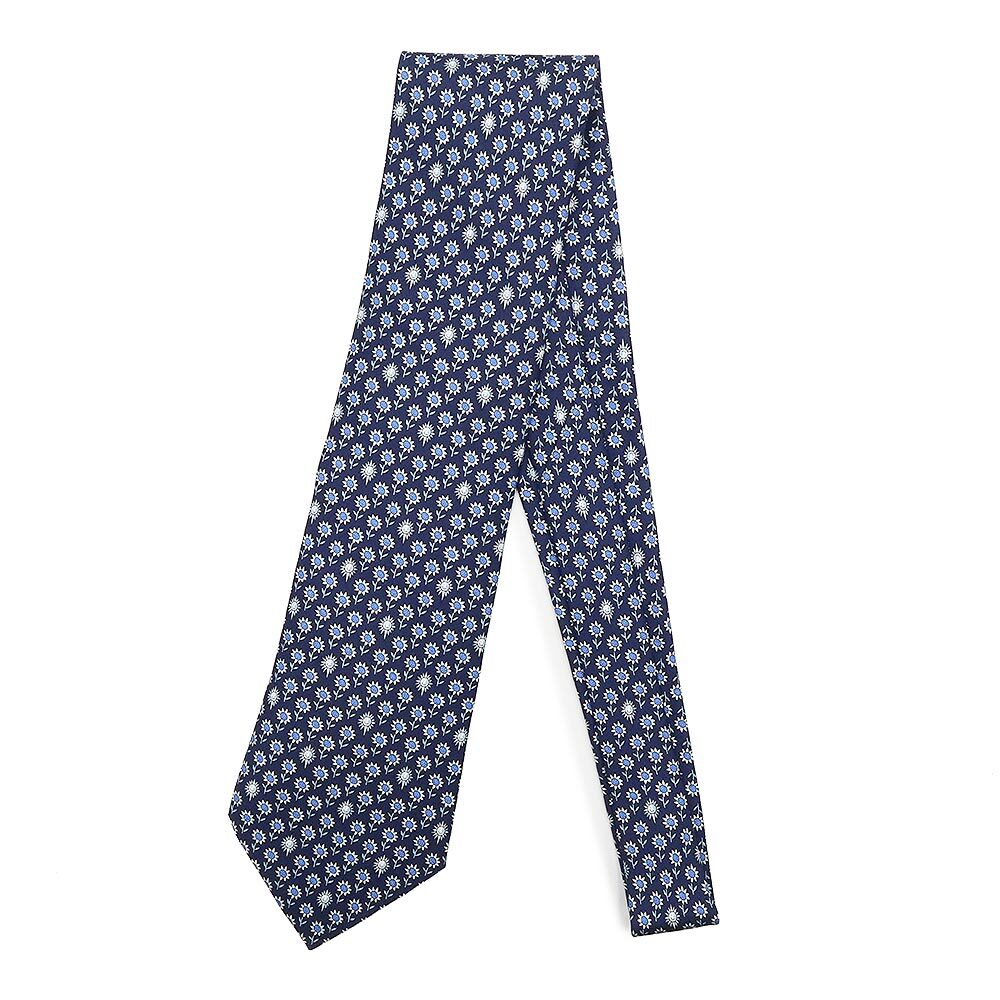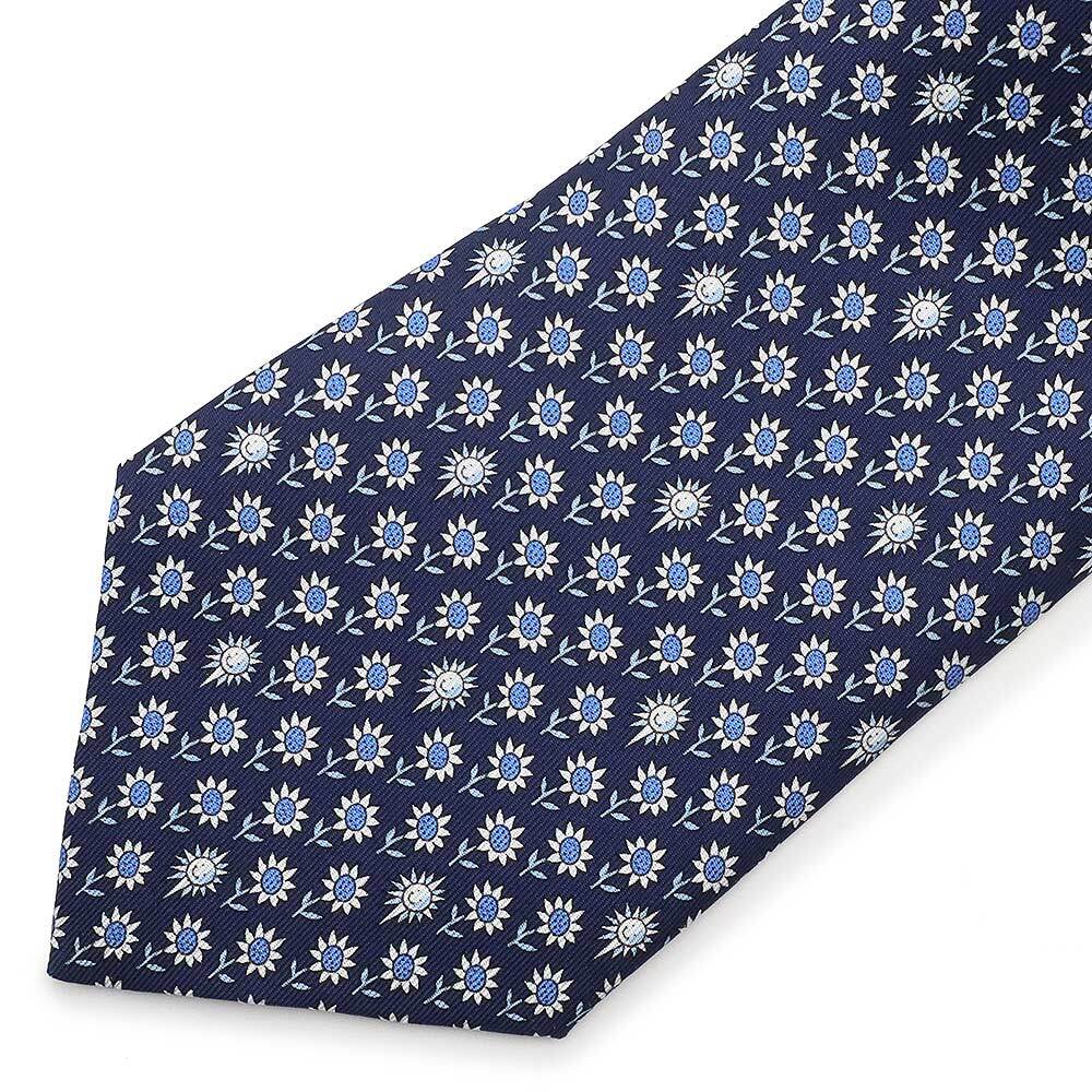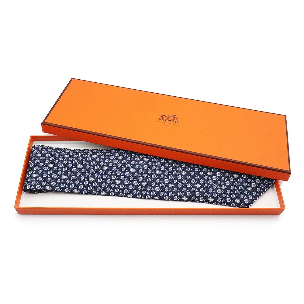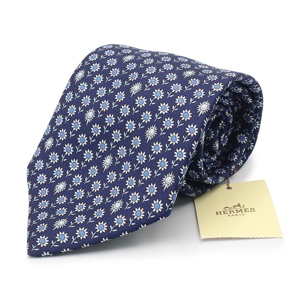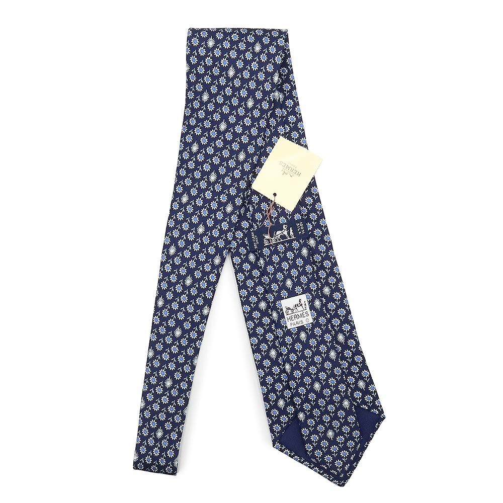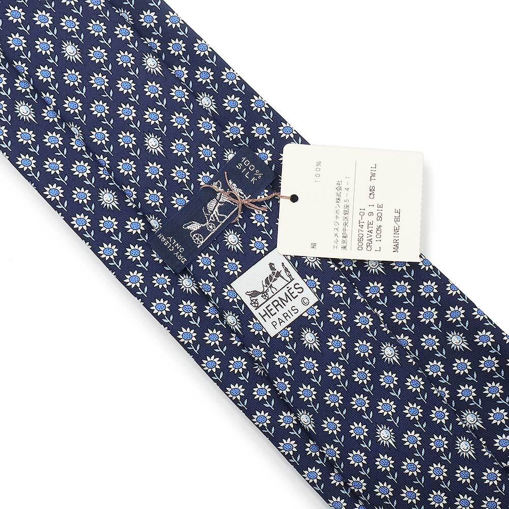 (新品・未使用品)エルメス HERMES ヒマワリ 向日葵 ネクタイ 9.1CM シルク100% マリン マリーヌ ブルー 箱付