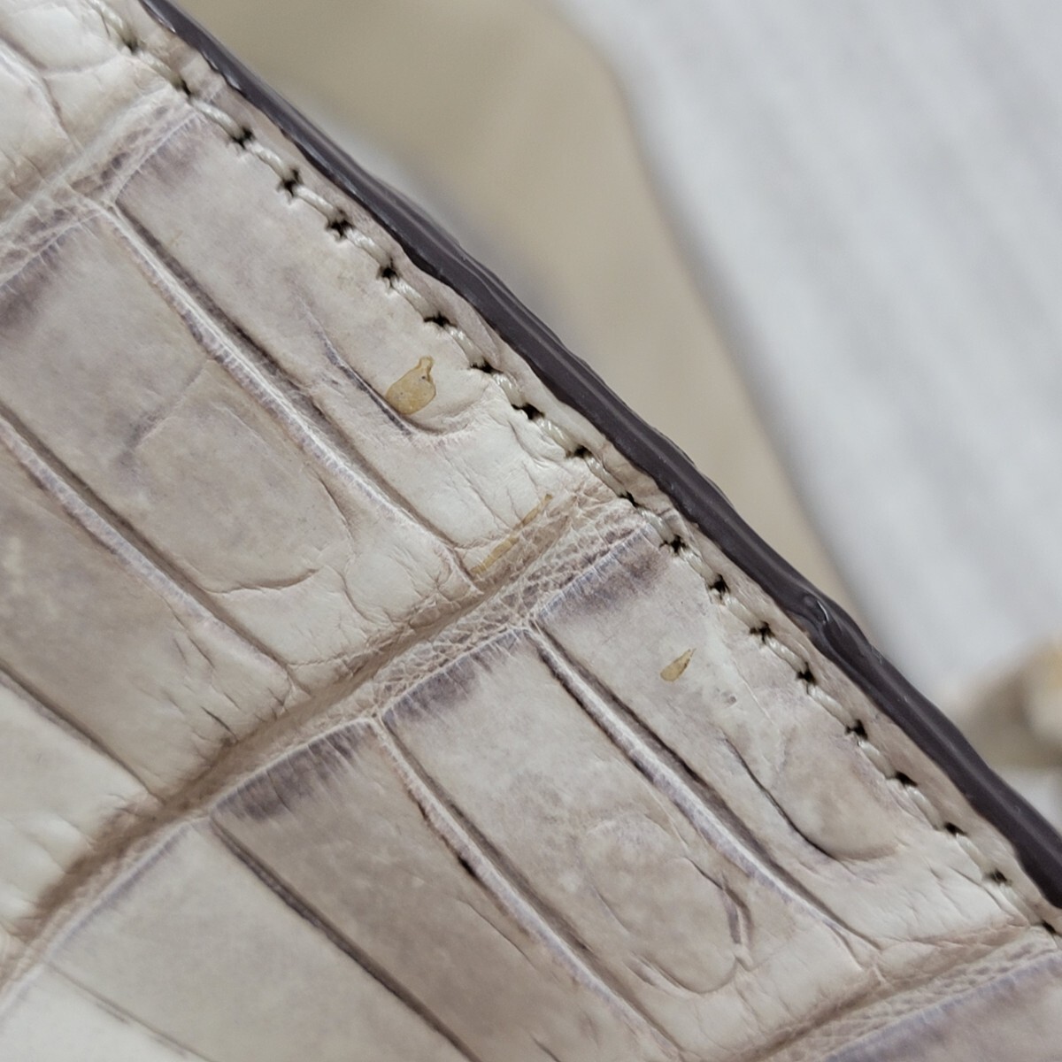 通常のクロコダイルレザーは染色されますが、ヒマラヤクロコダイルは原則として染色をせず、革が持つ本来の色合いを活かして作られます。