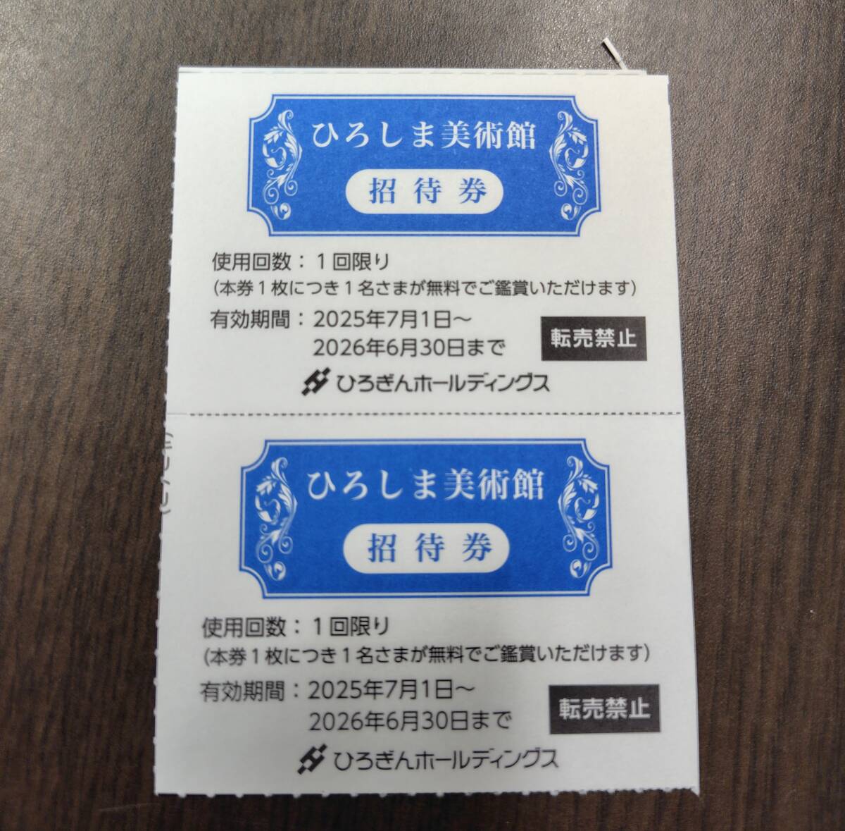 ひろぎんホールディングスの株主優待である、ひろしま美術館の招待券2枚です。
