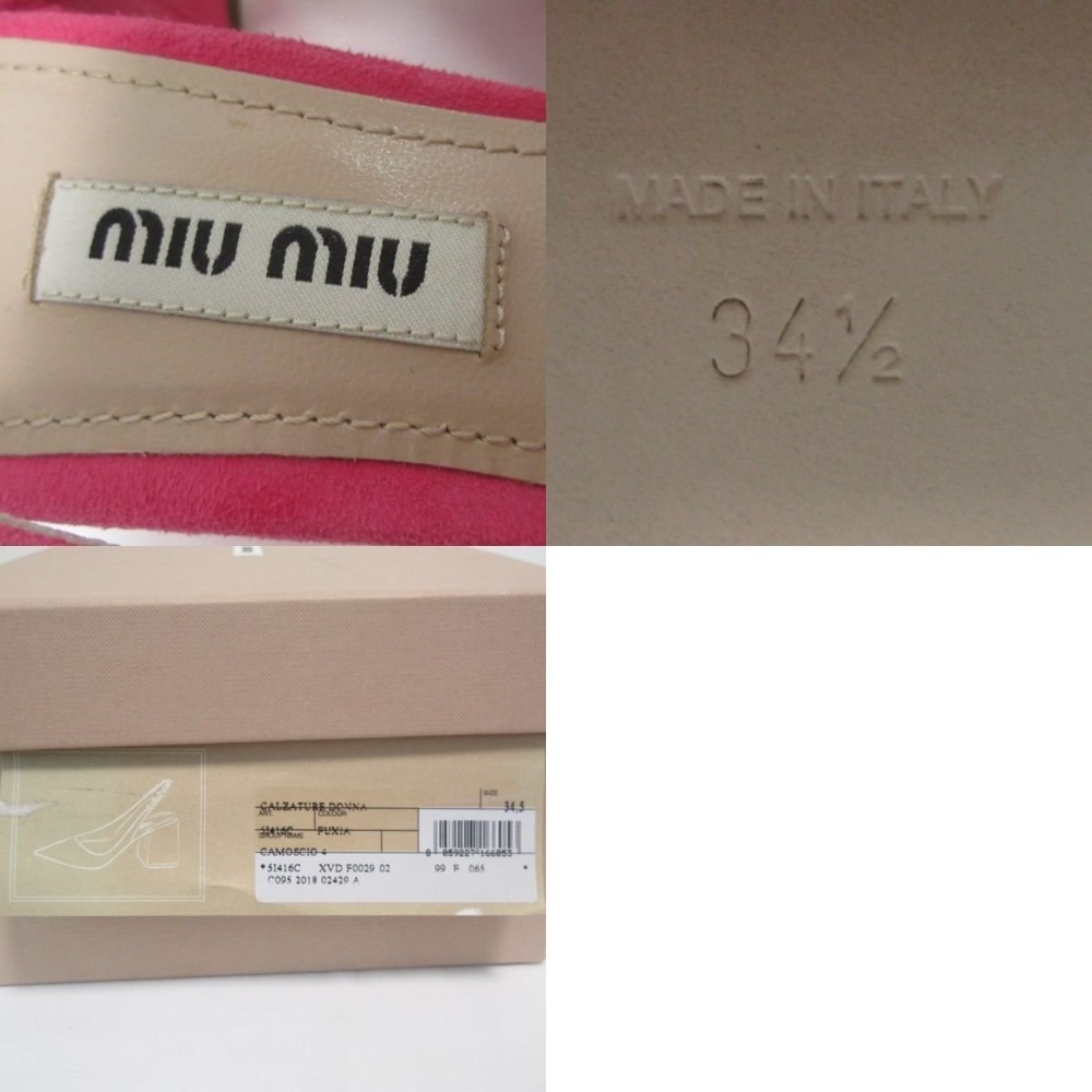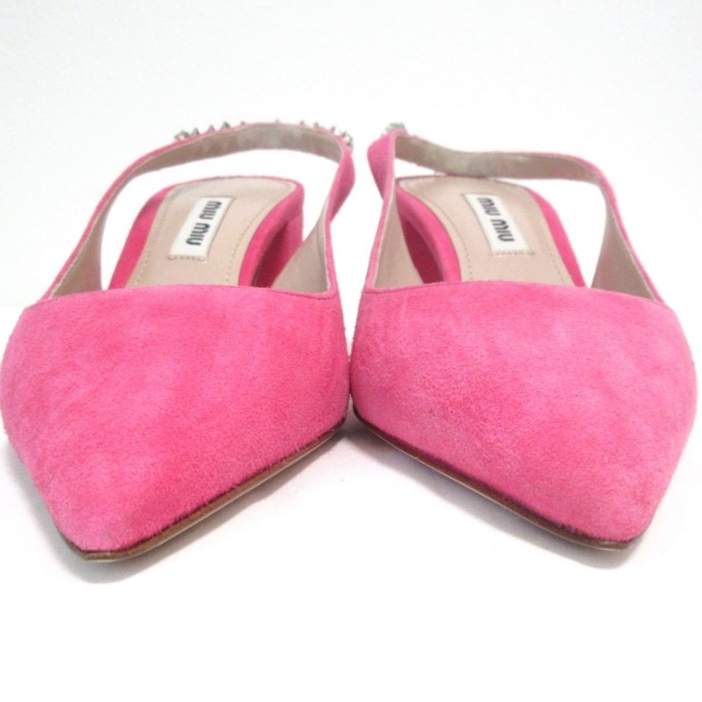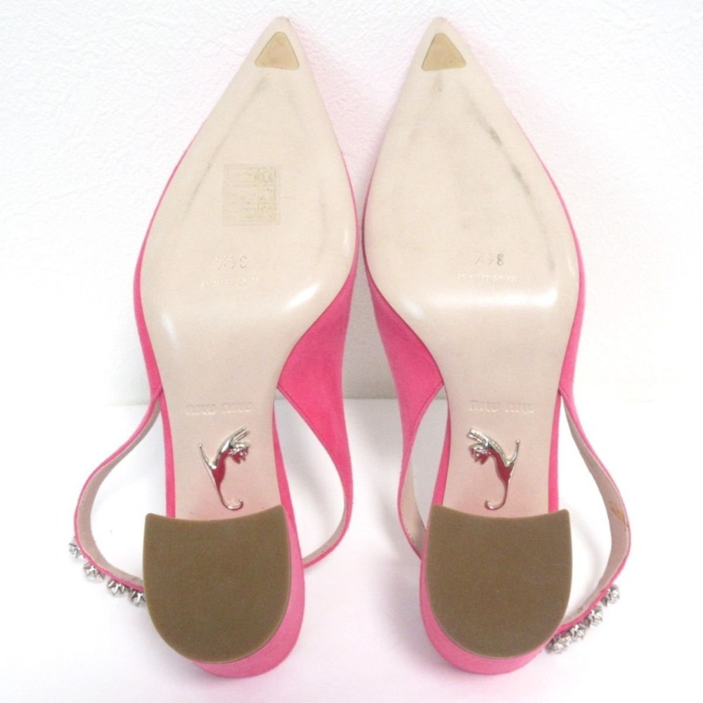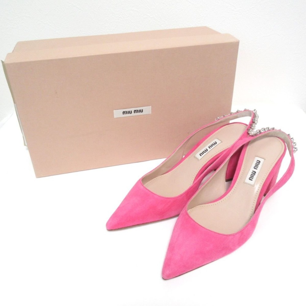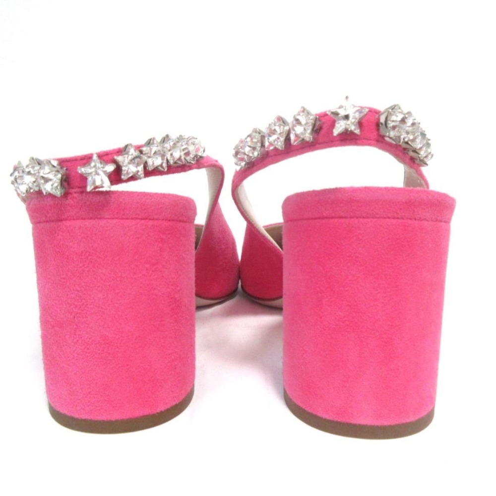 商品名:MIUMIU ミュウミュウ スエード ビジュー バックストラップ チャンキーヒール ミュール サンダル 34 1/2 21.5cm相当 ピンク