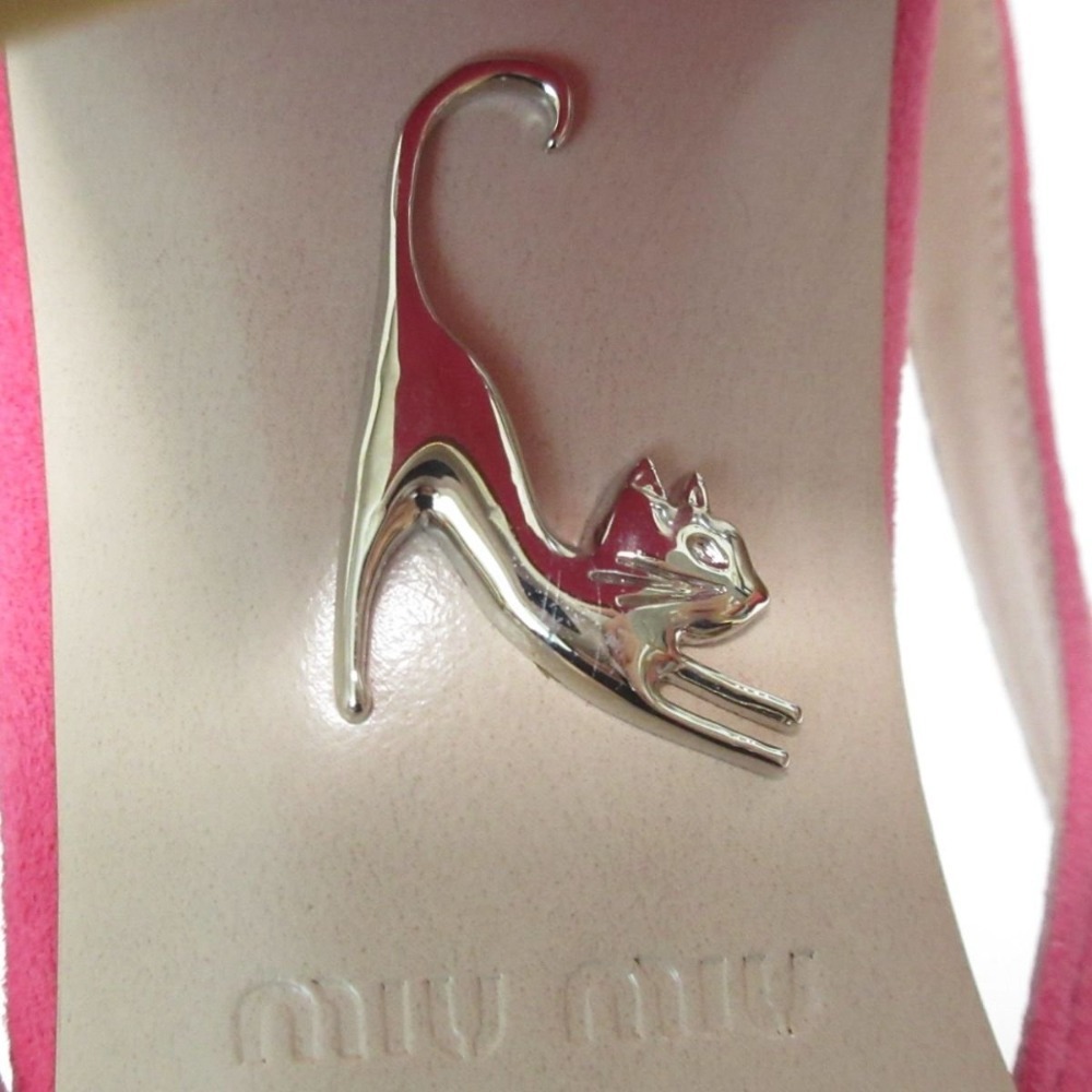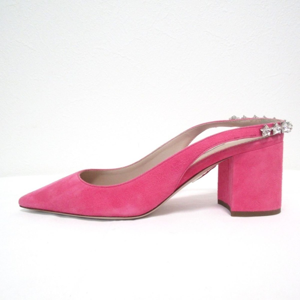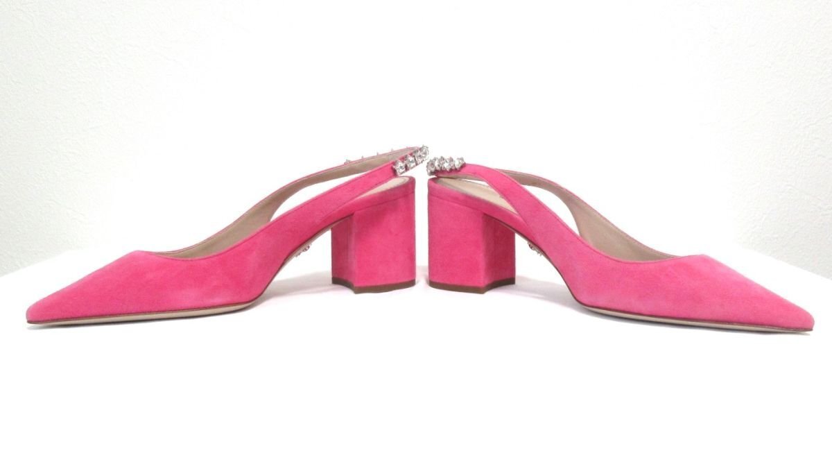 未使用 MIUMIU ミュウミュウ スエード ビジュー バックストラップ チャンキーヒール ミュール サンダル 34 1/2 21.5cm相当 ピンク