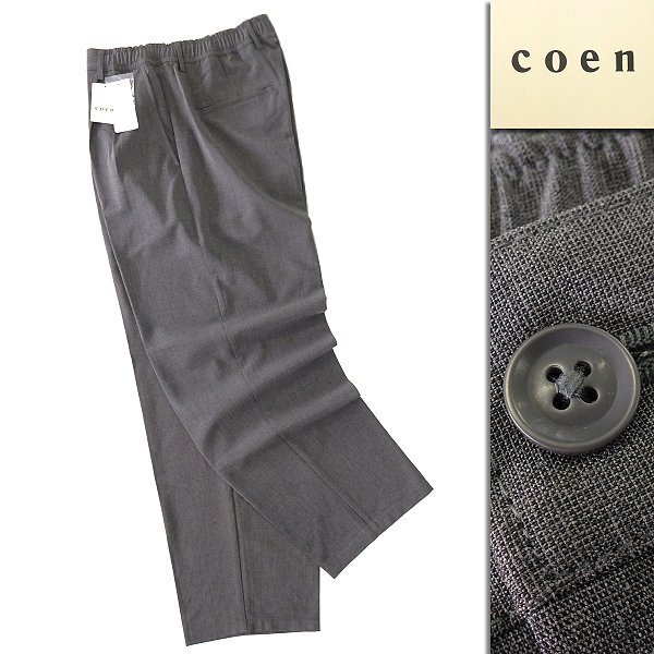 【coen(コーエン)】 ユナイテッドアローズが展開するストアブランド。「easy&chic style」をコンセプトに、程よいトレンドとリラックス感を取り入れた自然体で心地よく着られるカジュアルウェアブランドです。素材、デザイン、着心地。そのひとつひとつに込められた自由な発想とこだわりがコーエンの品質です。 上品な落ち感が魅力のポリエステルレーヨン素材を使用したスラックスです。 トレンド感のあるゆったりめなシルエットで、センタープレスとツータックを施し、タックインスタイルも綺麗に決まります。 バックウエストにはゴムが施されたイージーパンツ使用で、生地にはストレッチ性も備わっており、快適な履き心地です。 【デザイン】 ・2タック ・ジッパーフライ ・テーパードシルエット ・ウエストゴム入り |
