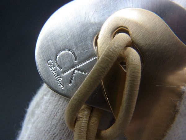 ■美品■ Calvin Klein カルバンクライン レザー ブレスレット アクセサリー レディース メンズ ベージュ系 DG7994