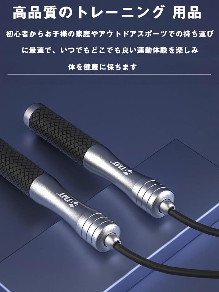 縄跳びのハンドル内に金属ベアリングを内臓し、ロープが絡まらず、スムーズな高速回転ができます。跳びやすく、二重跳び、三重跳び、長時間の有酸素運動に適しています。