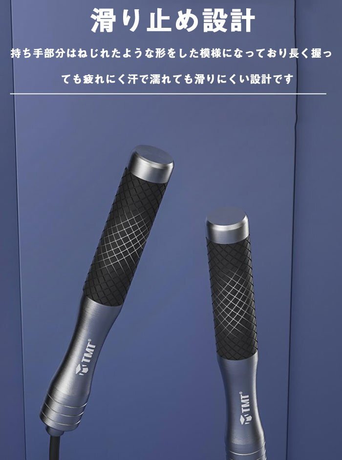 ジャンプロープのグリップ部は高弾性の素材採用しており、持ちやすく、滑りにくいので、手にフィットしやすい。汗をかいてもすぐに吸収してくれ、汗で滑り落ちる心配もありません。激しい運動でも対応でき、ボクシングやサッカー選手など競技者向けのハードなトレーニング用、エクササイズグッズとしてもお使い頂けます