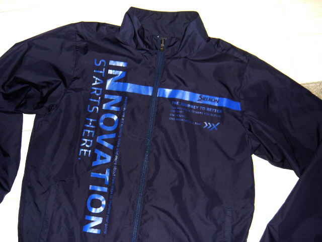 処分!¥100~スリクソンSRIXON  Lサイズ ジップアップジャケット/ウインドブレーカー ネイビーxブルーロゴ 中古良品