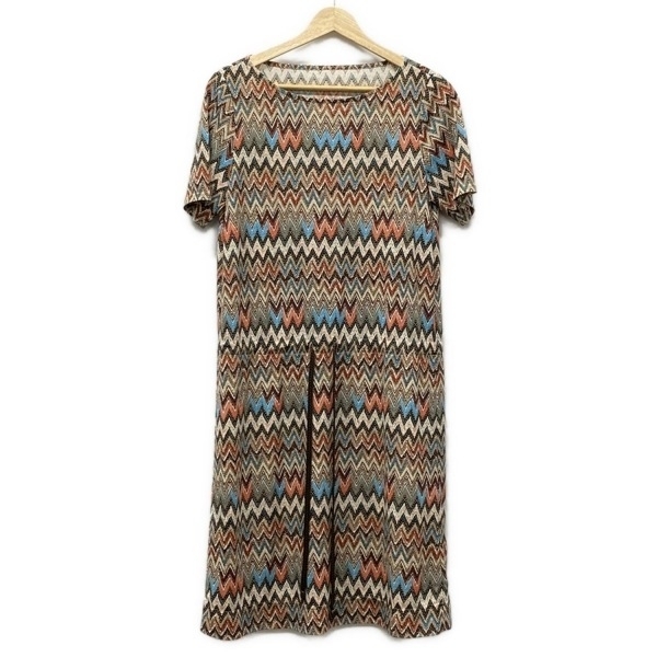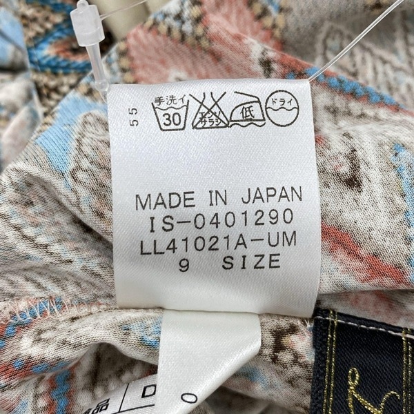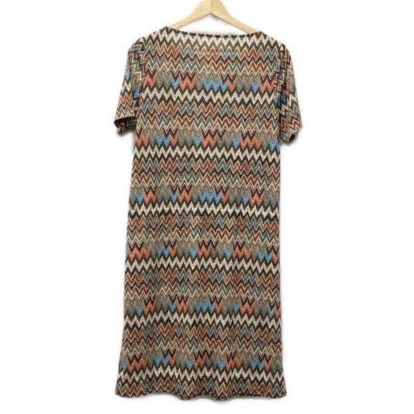 レリアン Leilian サイズ9 M - ベージュ×ブルー×マルチ レディース クルーネック/半袖/ひざ丈 美品 ワンピース