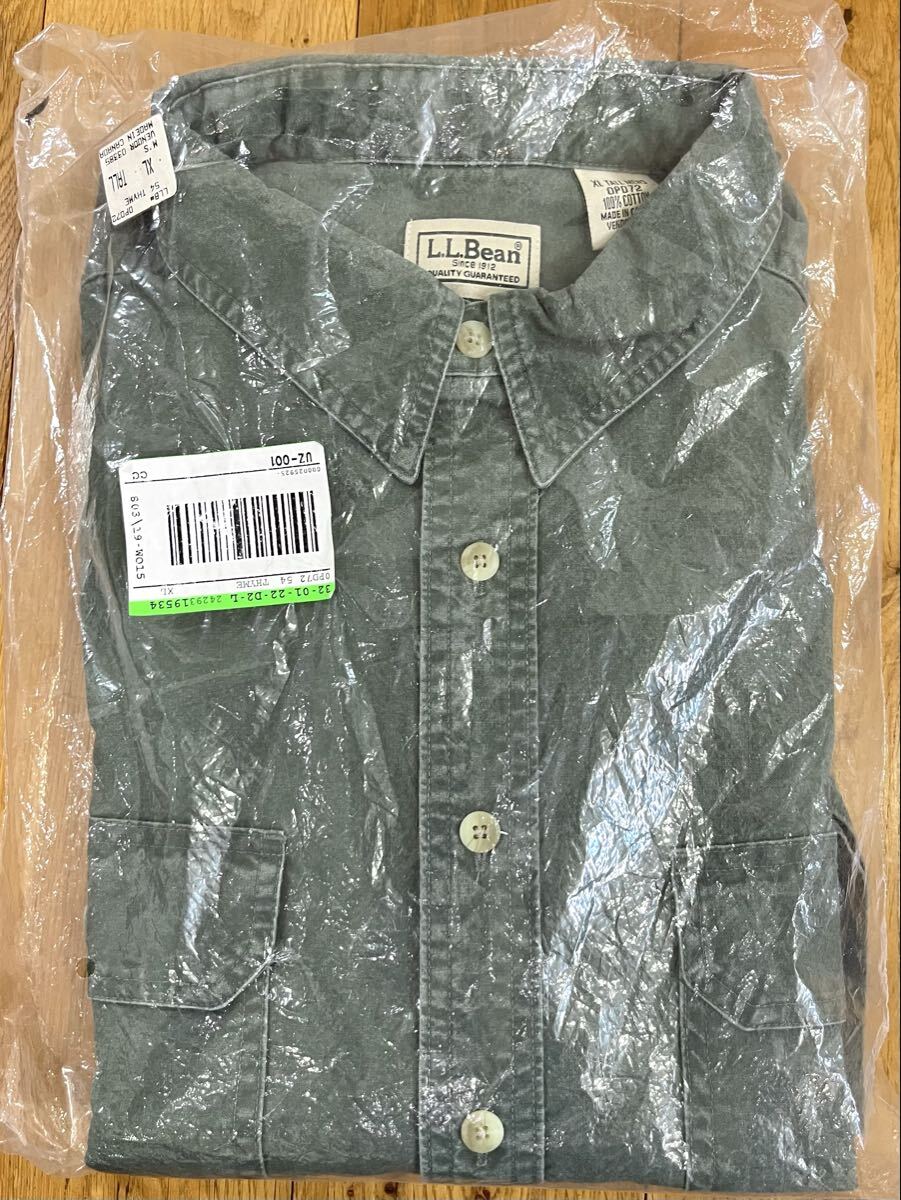 ビンテージのエルエルビーンコットン半袖シャツ。状態確認と撮影のために開封しましたが当時の袋入りのデッドストックです。カナダ製。