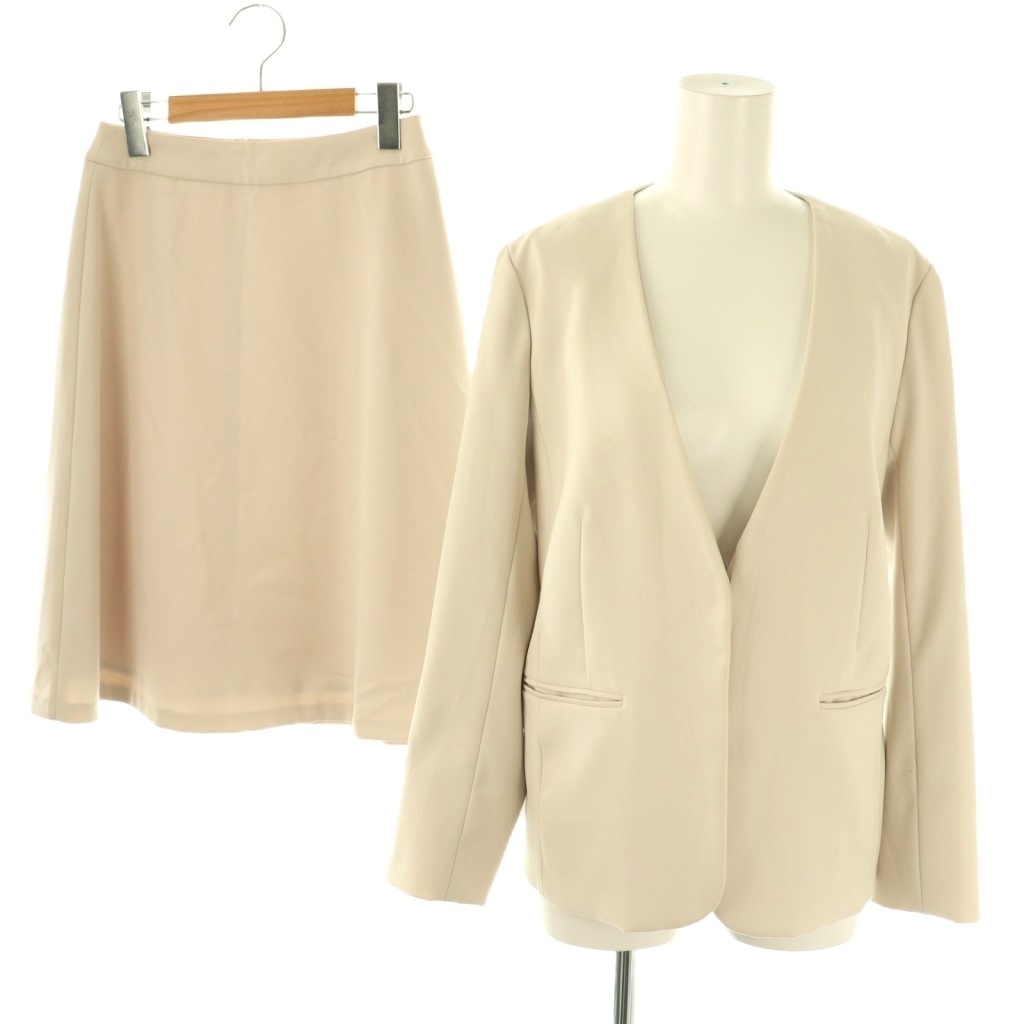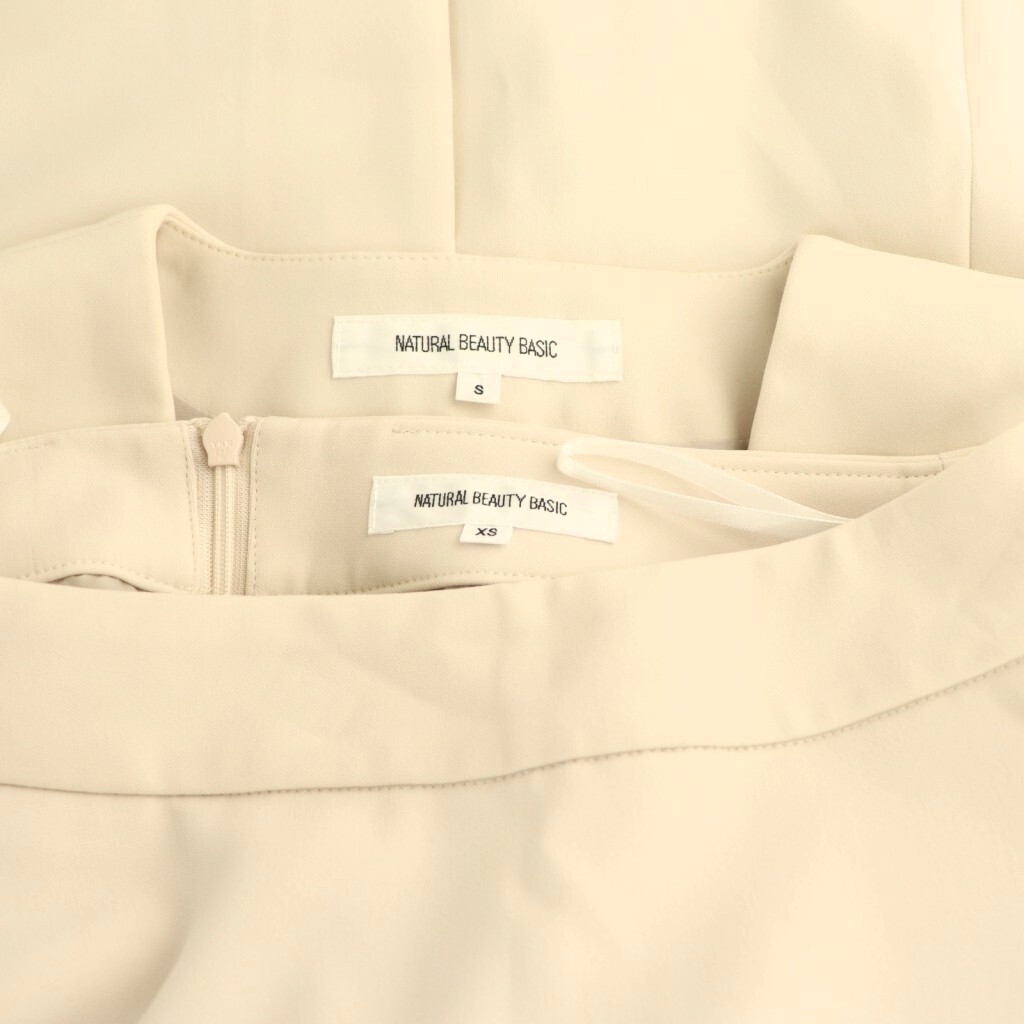 ナチュラルビューティーベーシック NATURAL BEAUTY BASIC セットアップ スーツ ノーカラージャケット スカート 膝丈 S XS ベージュ /HK ■OS レディース