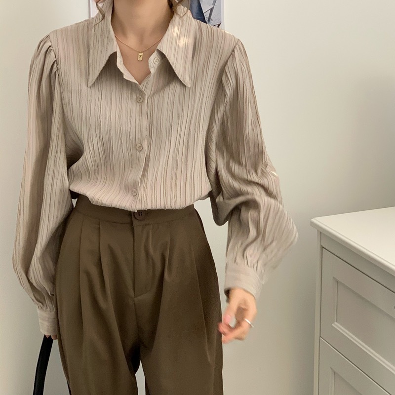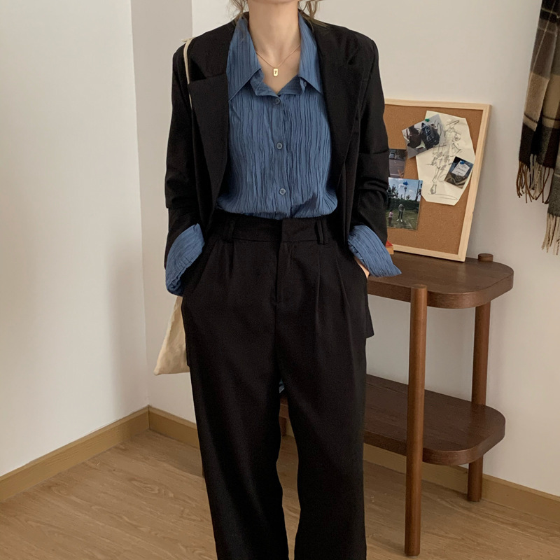 上品トップス ブラウス シャツ 7分袖 プルオーバー 襟つき 羽織り カジュアル レディース 普通(M) ブルー3色