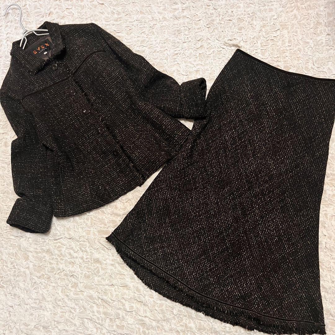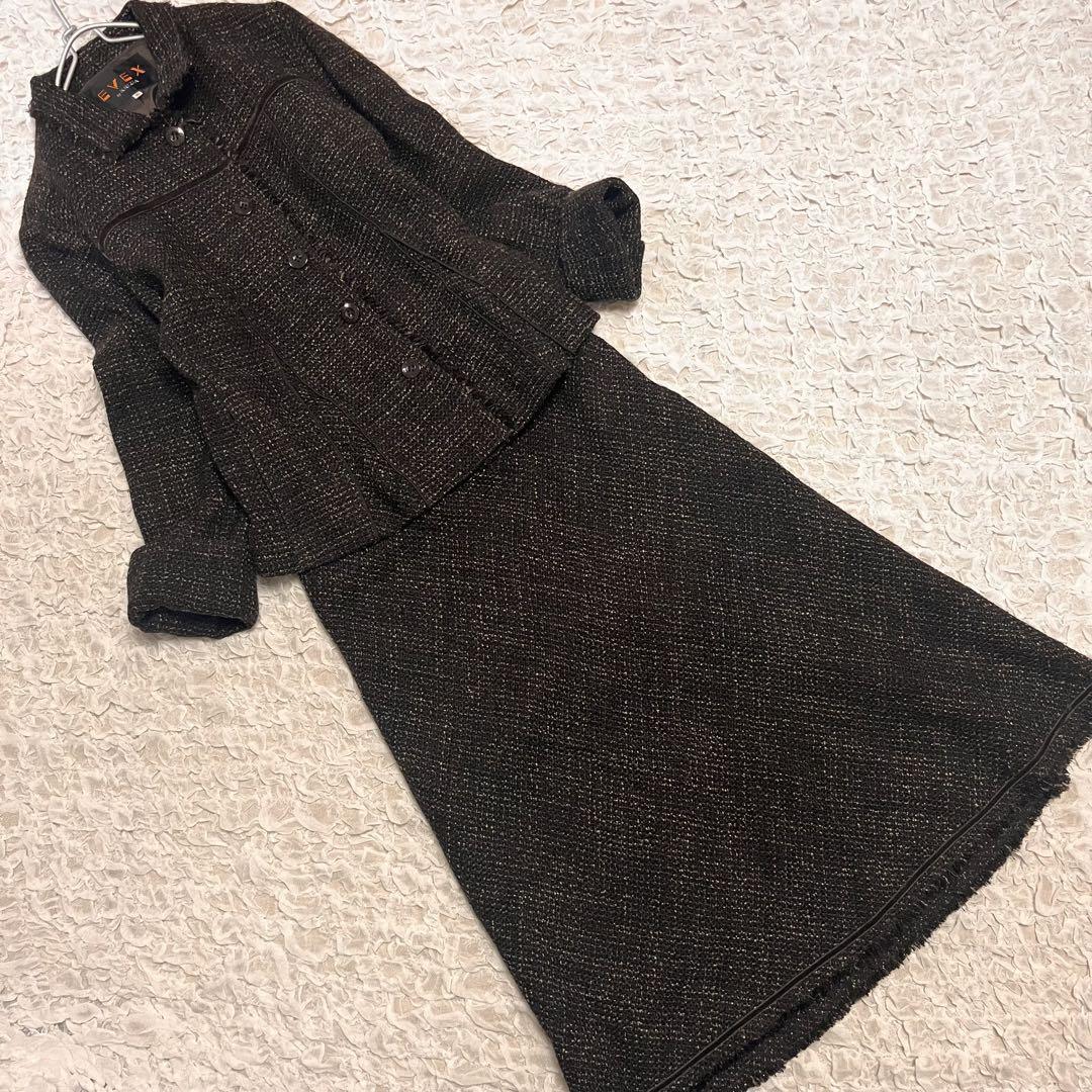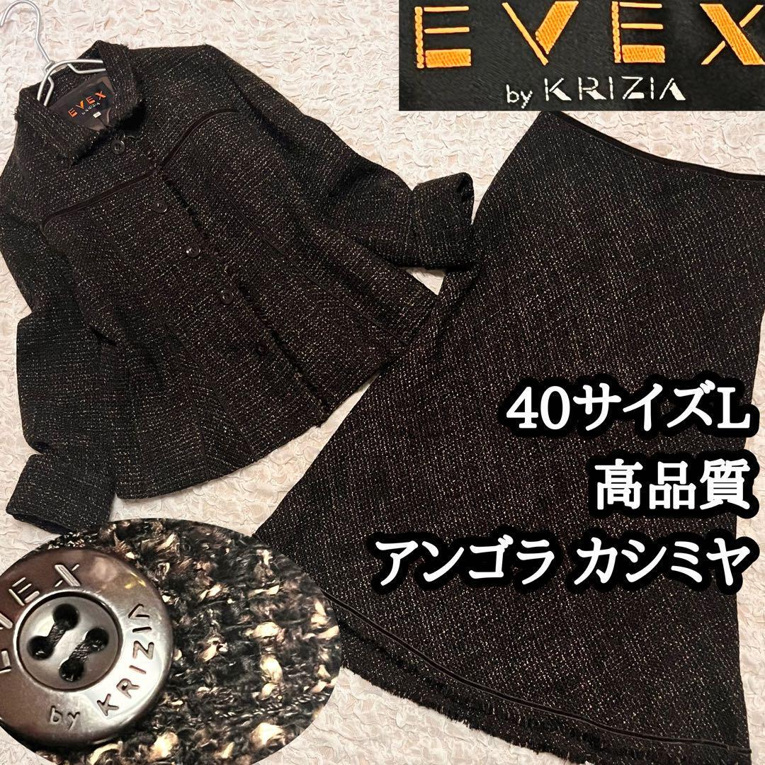 ■アイテム: カシミヤ アンゴラ【EVEX KRIZIA】 40L ストレッチ スカートスーツ