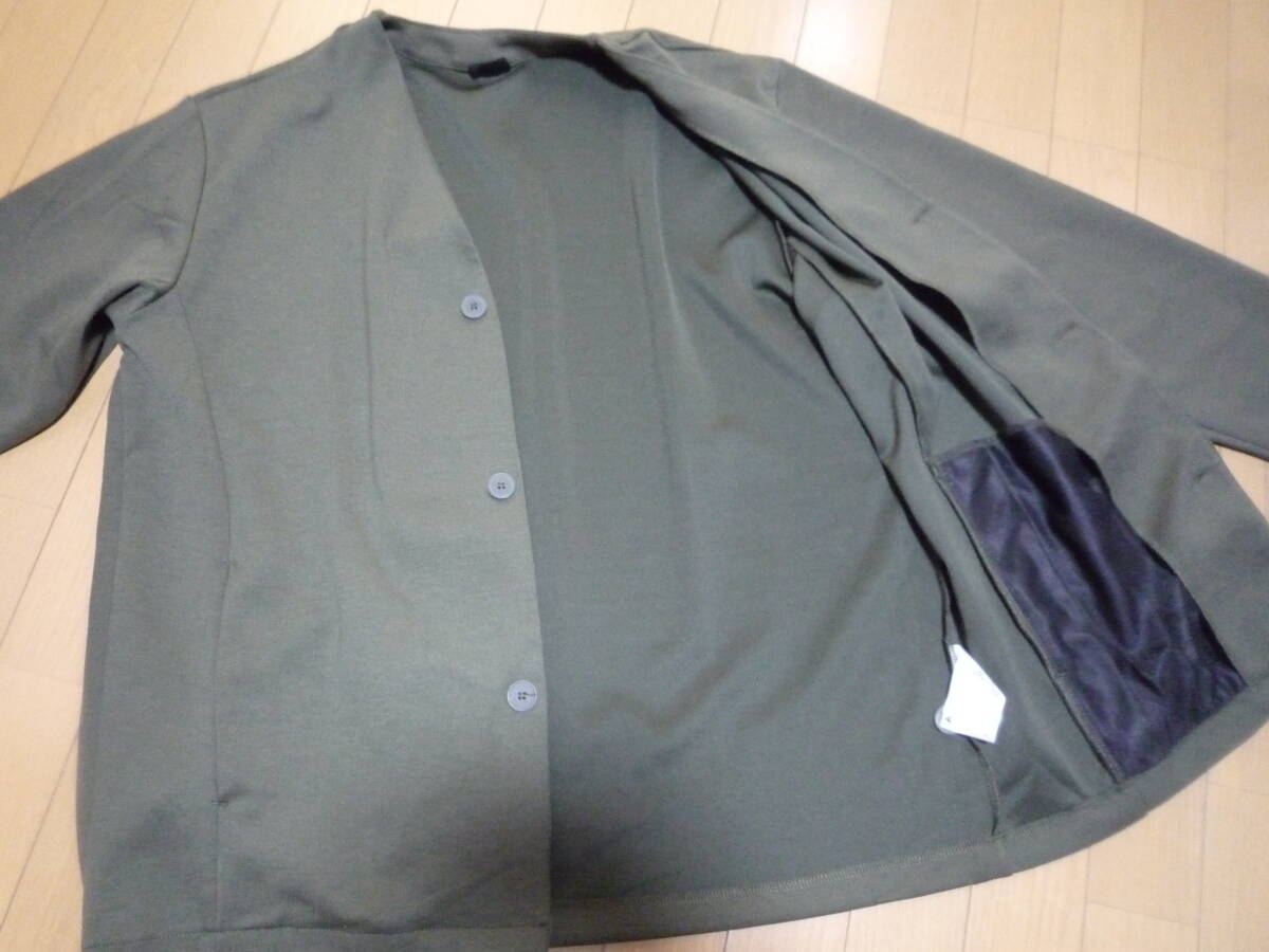 ノーカラー ジャケット カーキ カジュアル LL★送料無料