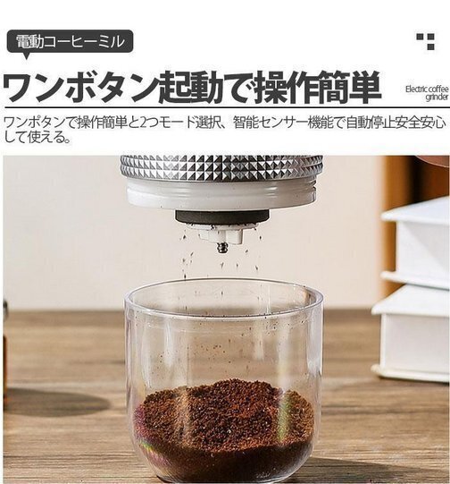 操作簡単/自動停止!電動コーヒーミルはワンボタンで老若男女にも操作簡単、忙しい時間も有効利用可能で、家事時間短縮して一緒にゆっくり香り満々のコーヒーを楽しむ。