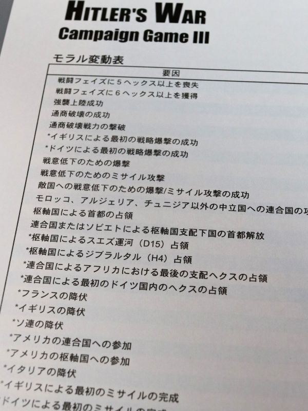 本来、このゲームにはシナリオが2つとキャンペーン・ゲームが2種類含まれています。キャンペーン・ゲームについては基本的なルールでプレイできる「ゲームⅠ」と、より複雑な「ゲームⅡ」で構成されていますが、キャンペーン・ゲームⅡにおいても習熟したプレイヤーの手にかかるとルールの穴を突く展開ができるようになっていたり、かなり史実からかけ離れた展開になるこがも多いものでした。この「キャンペーン・ゲームⅢ」については海外で発表されたもので、ゲームが不自然な展開になりにくいよう、かなりの量の特別ルールが追加されたものです。これは従来公式に紹介されたことは無いものなので、貴重なものだと思います。