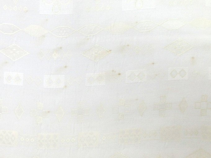 | 商品状態 | 反端より数メートル状態確認をしたところ、反端から50mほどに写真のような汚れがあります。内側は目立った黄変等は見当たりませんでした。 |