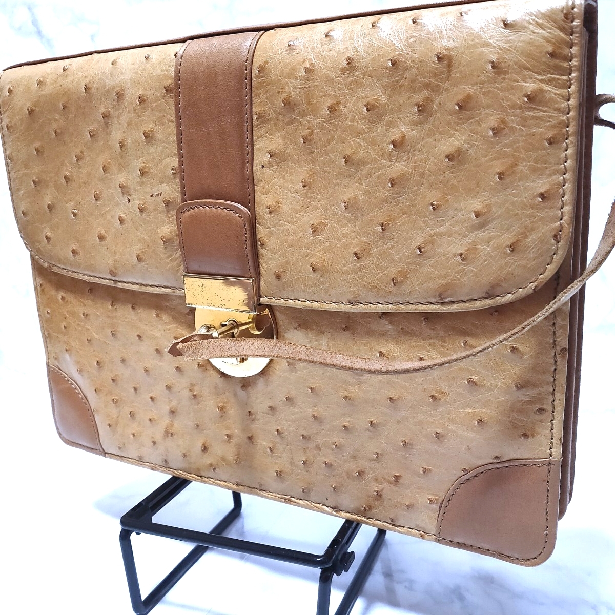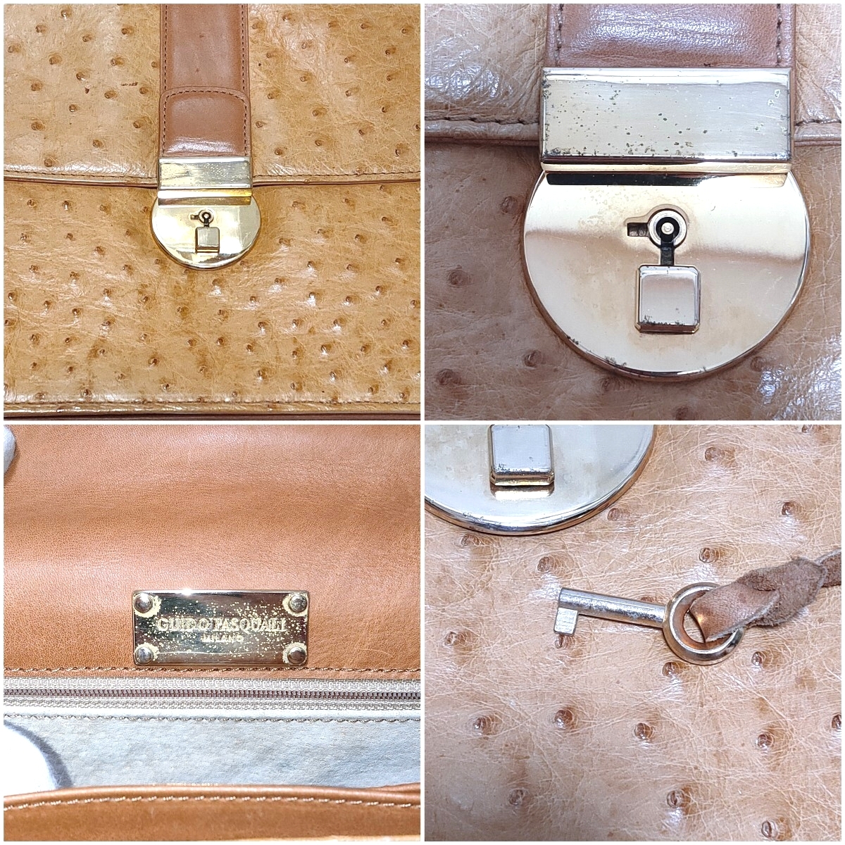 グイードパスカーリ GUIDO PASQUALI セカンドバッグ クラッチバック レザー オーストリッチ キーロック 昭和レトロ ヴィンテージ ストラップ メンズ