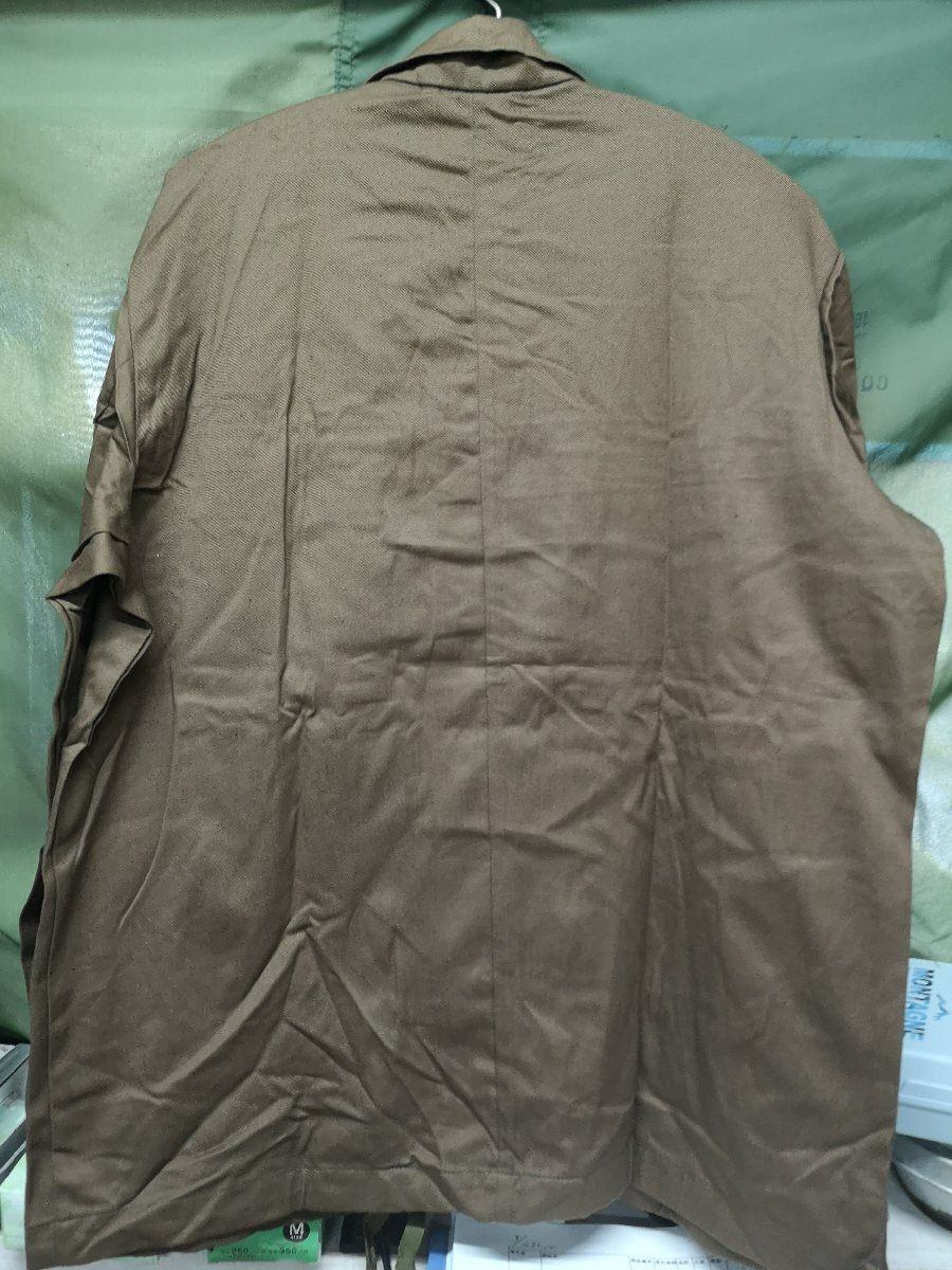 チェコ軍ユーティリティーワークジャケットです。 フロント部分にポケットが2つ付きます。未使用品ですが日焼けなどあります写真でご確認ください。 デザインに個体差があるもののそれぞれに魅力的があり、合わせやすい落ち着いたカラーにまとまっています。 薄手のコットン地が使用されアウターやインナーにも使えるので、オールシーズン着用が可能です。 素材:コットンツイル サイズ表示は3B 着丈が80cm程度、身幅が69cm程度、肩幅55cm程度、袖71センチ程度です。 沖縄離島を除く全国500円でお送りいたします、落札価格にプラスでお願いいたします。
