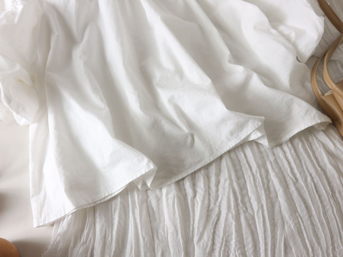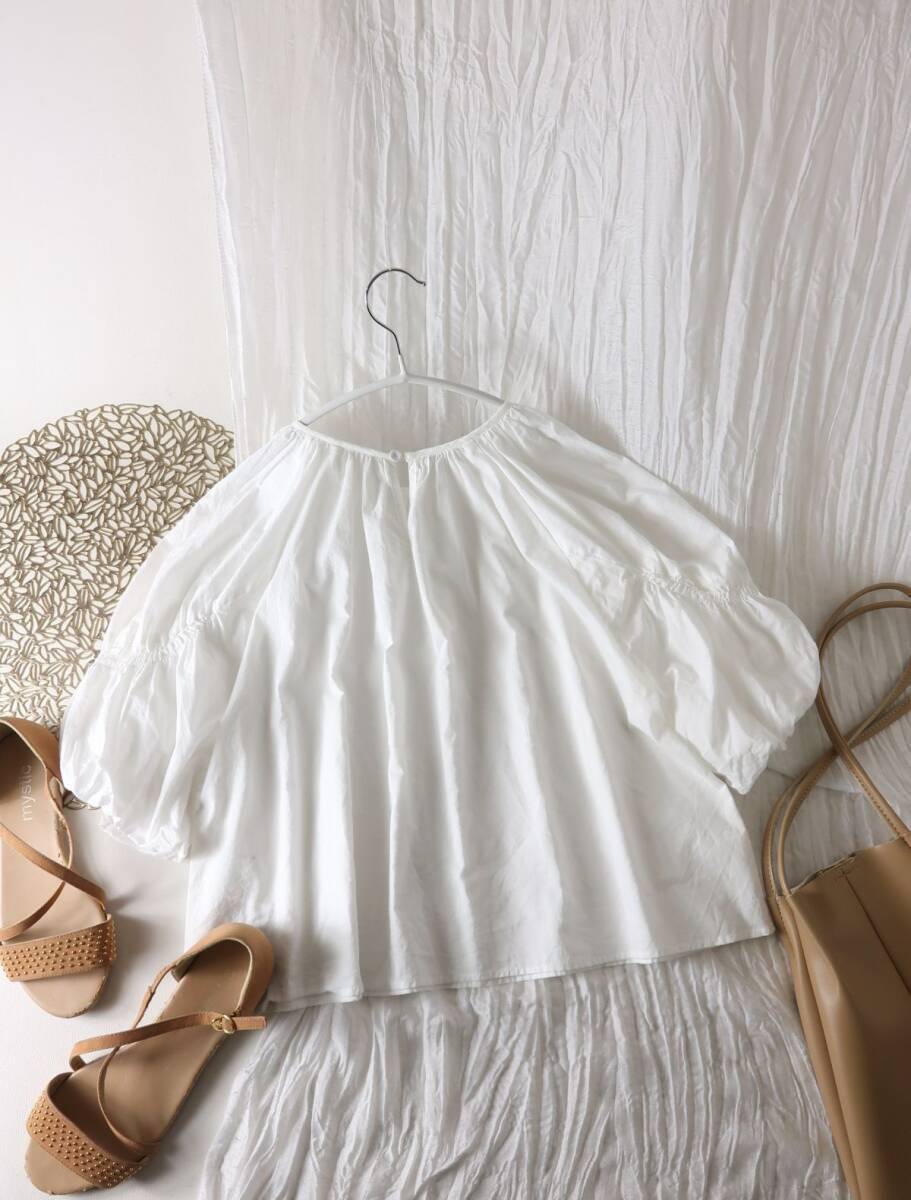 【立体的なパフスリーブに仕上げたレディライクブラウス】