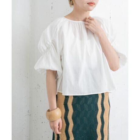 身頃はシンプルながらも立体的なパフスリーブにシャーリングを施した、レディライクなブラウス。二の腕を自然とカバーしてくれます。ボトムスにタックイン・アウトどちらも可能な着丈や、着心地の良い綿を含む素材もポイント。ON/OFFの活躍が期待できます。
