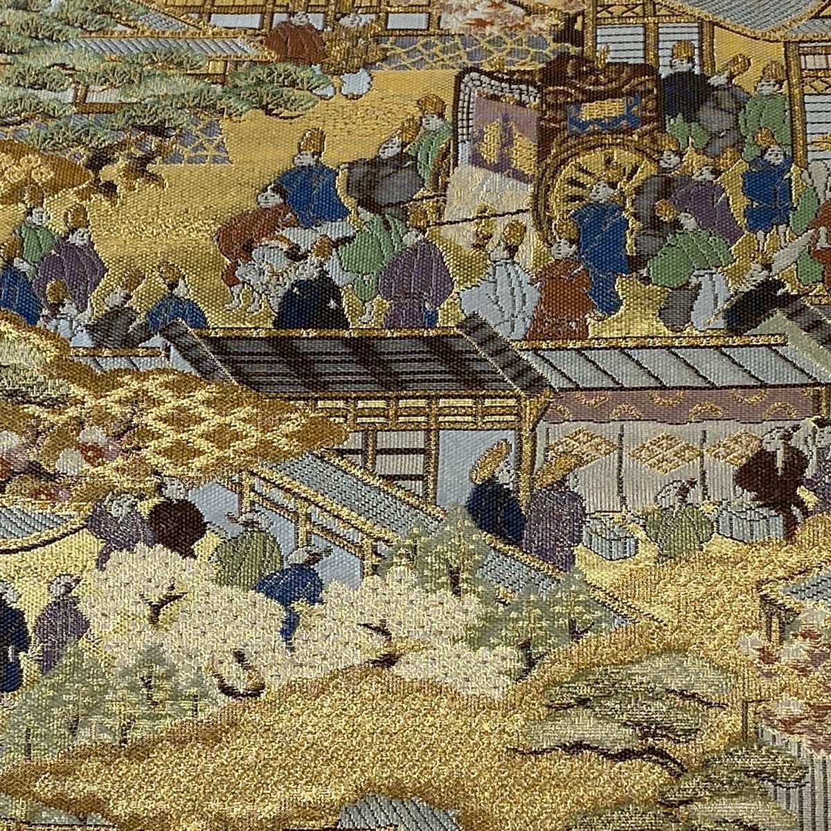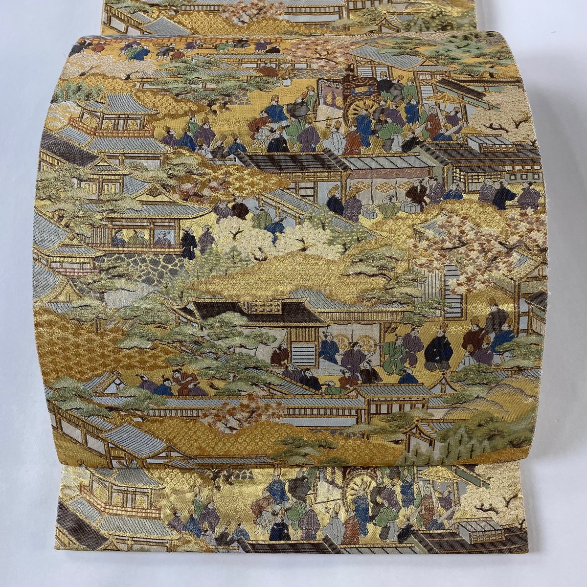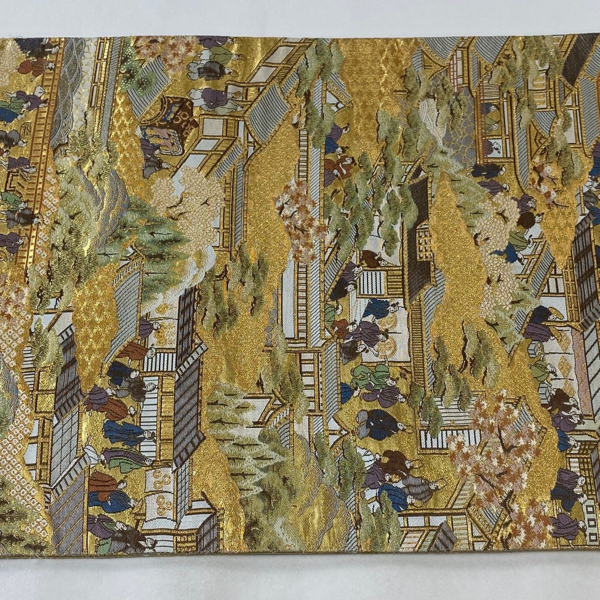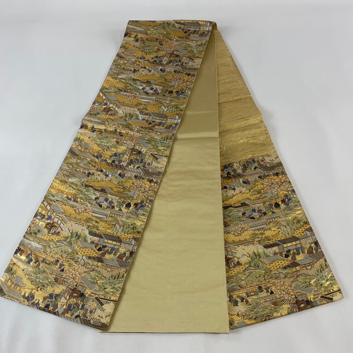 | 袋帯 美品 秀品 人物 風景 箔 金糸 金色 六通 正絹 【中古】 |