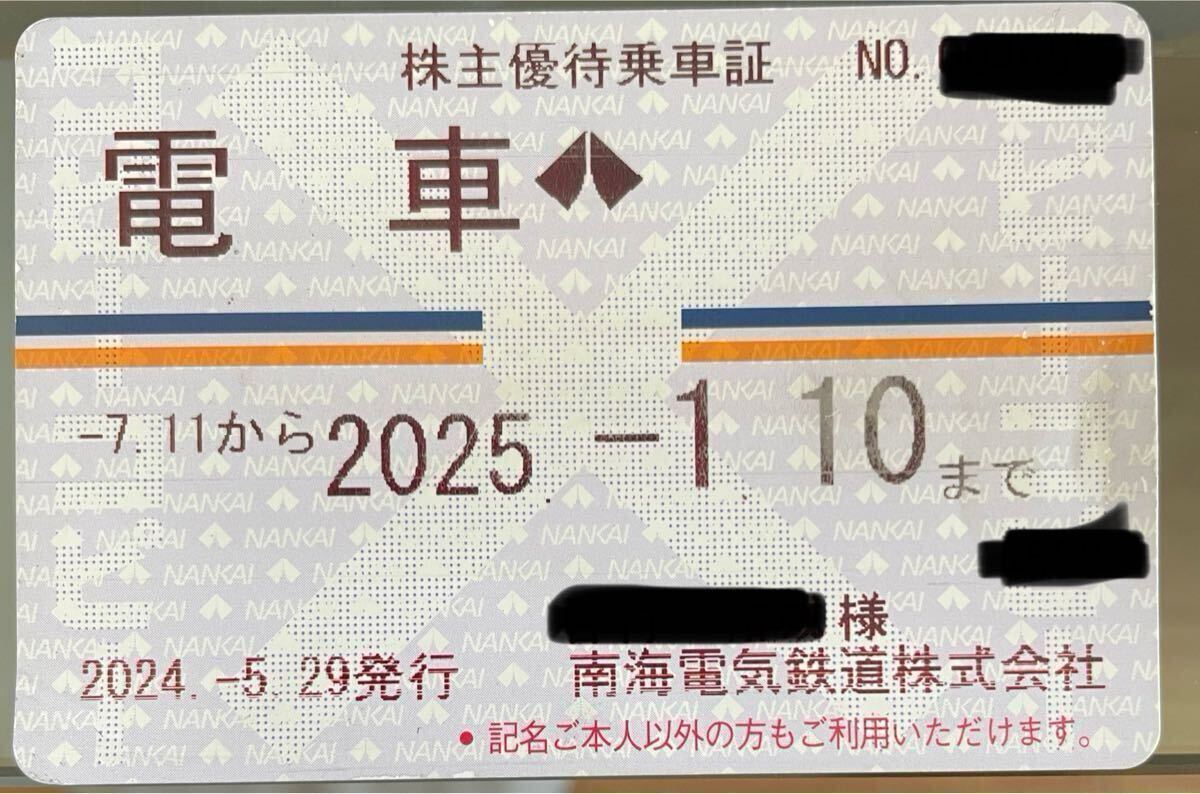 【使用期限切2枚】南海電鉄 株主優待乗車証 定期券