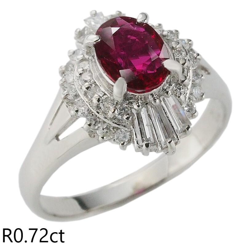 詳細:ノーブランド ルビー/0.72ct ダイヤ/0.51ct 0.20ct Pt900 デザイン リング 15.5号 鑑別書付き 仕上済