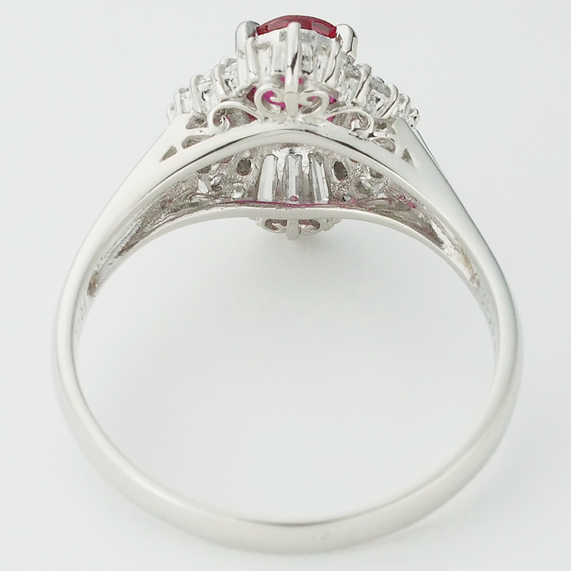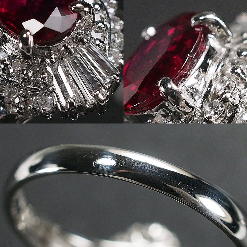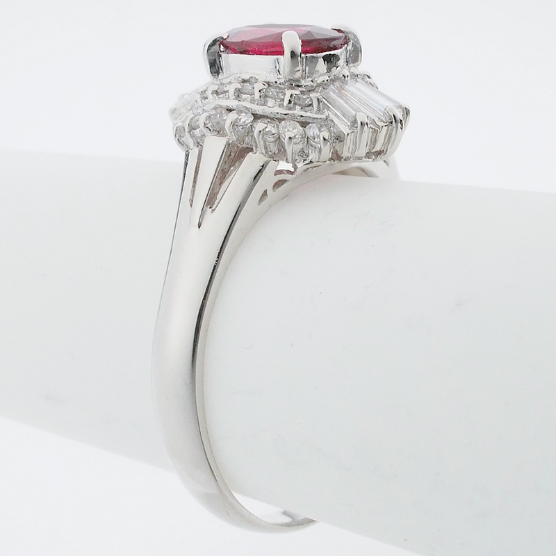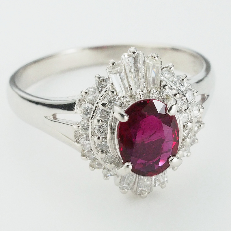 ルビーの赤い輝きとダイヤモンドの白い輝きが美しいプラチナ製のリングです。