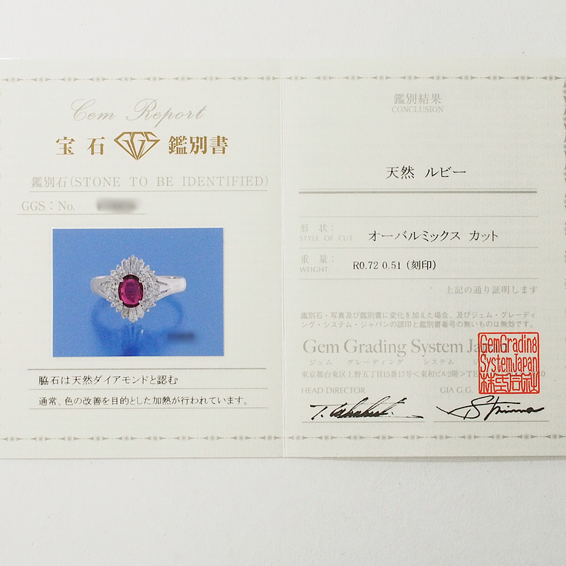 備考:ルーペで見るとルビー縁とダイヤに微細な傷、地金部分にスレや小傷が見られますが、大きく目立つような傷はなく、状態の良いお品物となっております。
