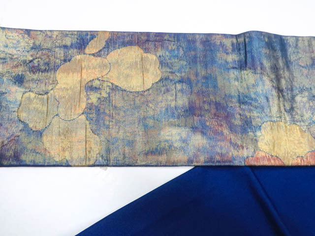 リサイクル商品ではございますが、大変良い状態のお品です。 地色は 紺です。 1枚目の画像が近いお色かと思われます。 素材は正絹です。 |