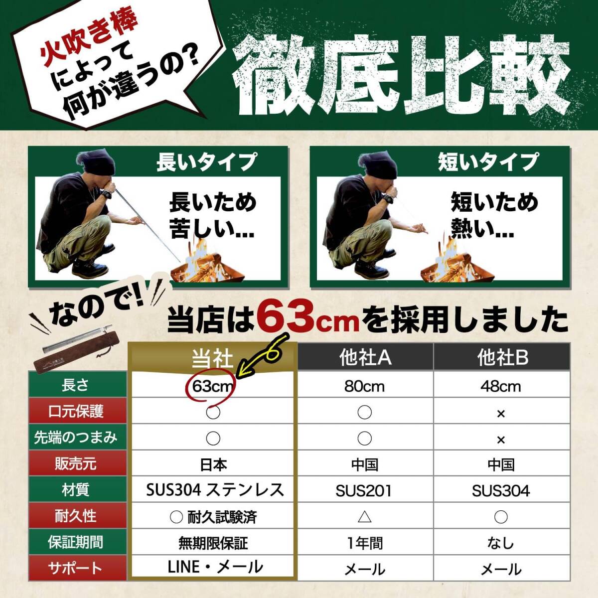 【ちょうどいいサイズ感】縮めたときは火起こしセットにも入るほどのコンパクトさ。火吹き棒は短すぎても火に近いぶん熱くなり、逆に長すぎても空気を送り込むのに苦しくなってしまいます。山麓工房では63㎝の長さを採用いたしました。