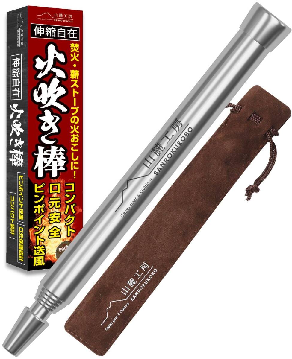 山麓工房 現役キャンパー監修 火吹き棒 火起こし 無期限メーカー 伸縮自在 コンパクト 収納ケース付き アウトドア キャンプ 焚き火 バーベキュー (シルバー)